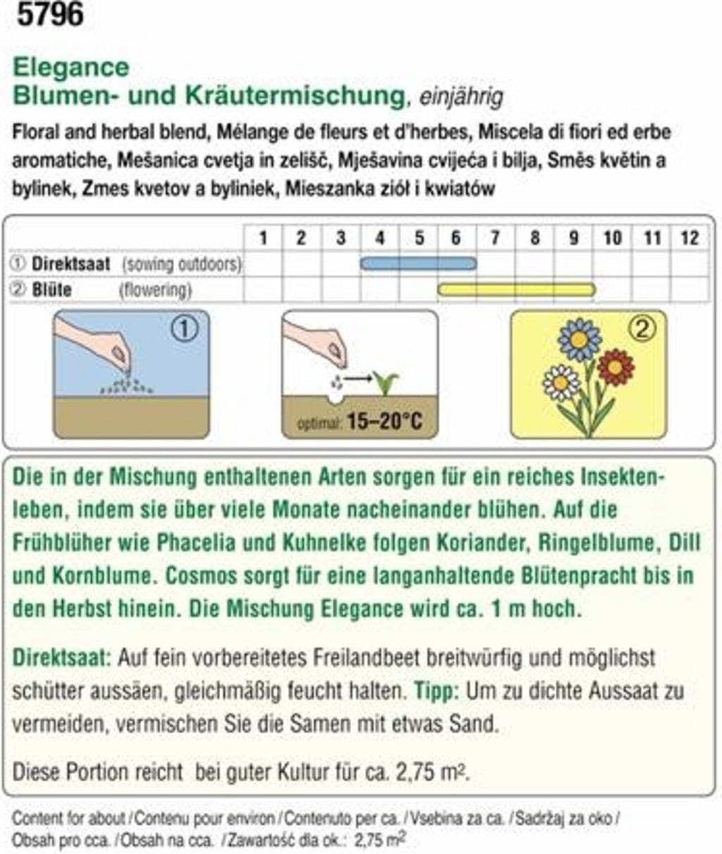 Tato pestrá směs květin a bylinek promění Vaši zahradu v jedinečné moře květů a díky dlouhé době květu je také cenným zdrojem potravy pro četný hmyz.