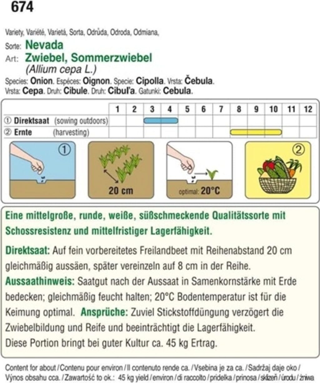 „Nevada“ je středně velká, kulatá a bílá odrůda cibule. Tato sladká odrůda je odolná proti vybíhání do květu a je vhodná ke skladování. Představuje dokonalé dochucení mnoha studených i teplých pokrmů.