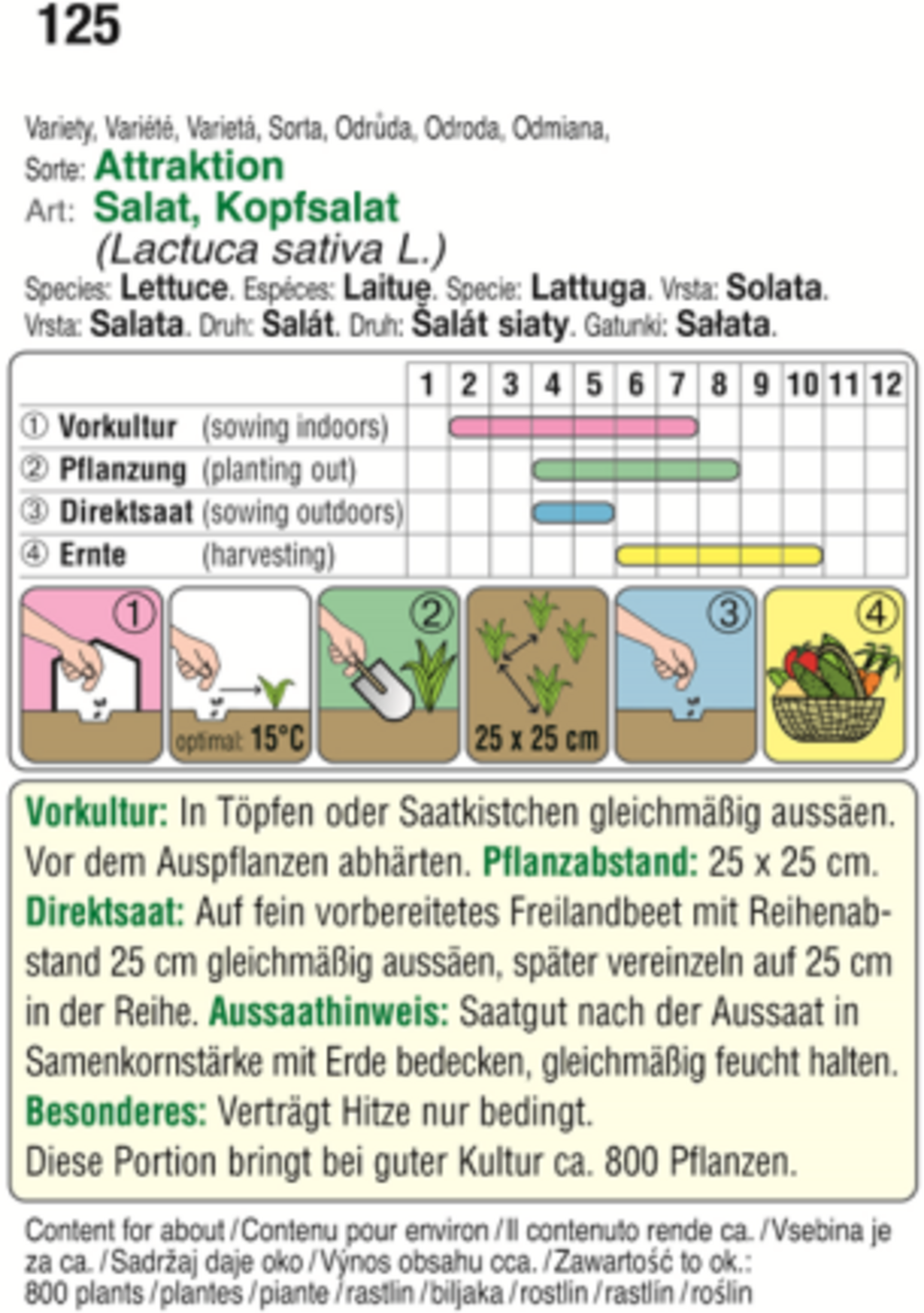 Hlávkový salát "Attraktion" je raná až poloraná odrůda a tato porce při dobrém pěstování přinese až 800 rostlin.