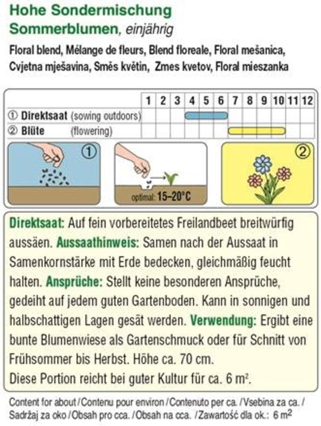 Tato směs květin obsahuje různě vysoké letničky, které kvetou od raného léta až do podzimu.