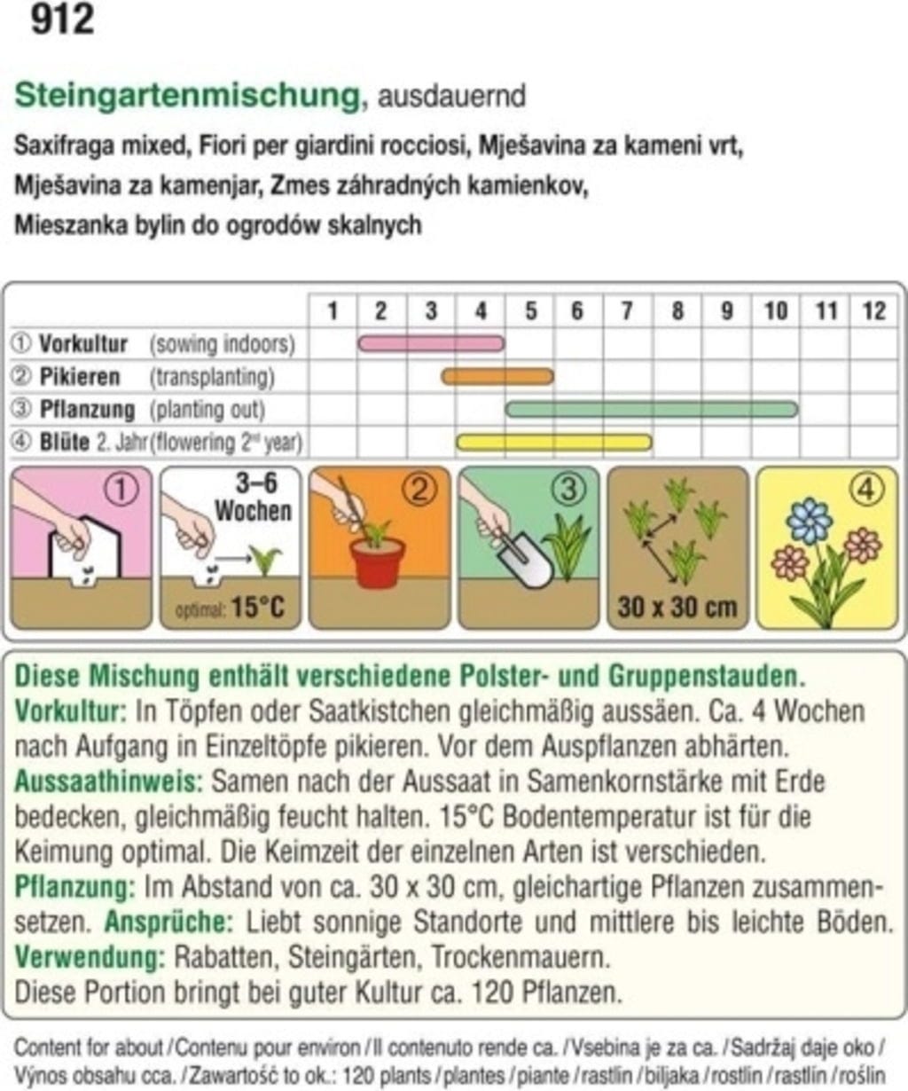 Skvělá směs polštářových a skupinových trvalek. Ideální pro suché zídky nebo skalky.