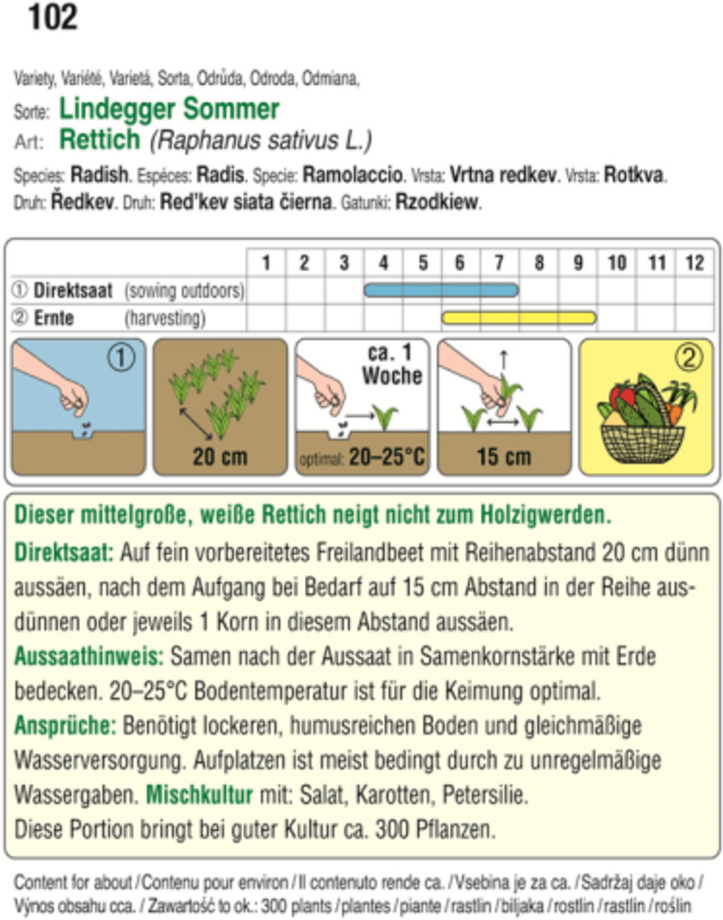Tato středně velká bílá ředkev nemá sklon k dřevnatění a skvěle se hodí na zdobení nebo do salátů. Navíc chutná obzvláště dobře k pivu.