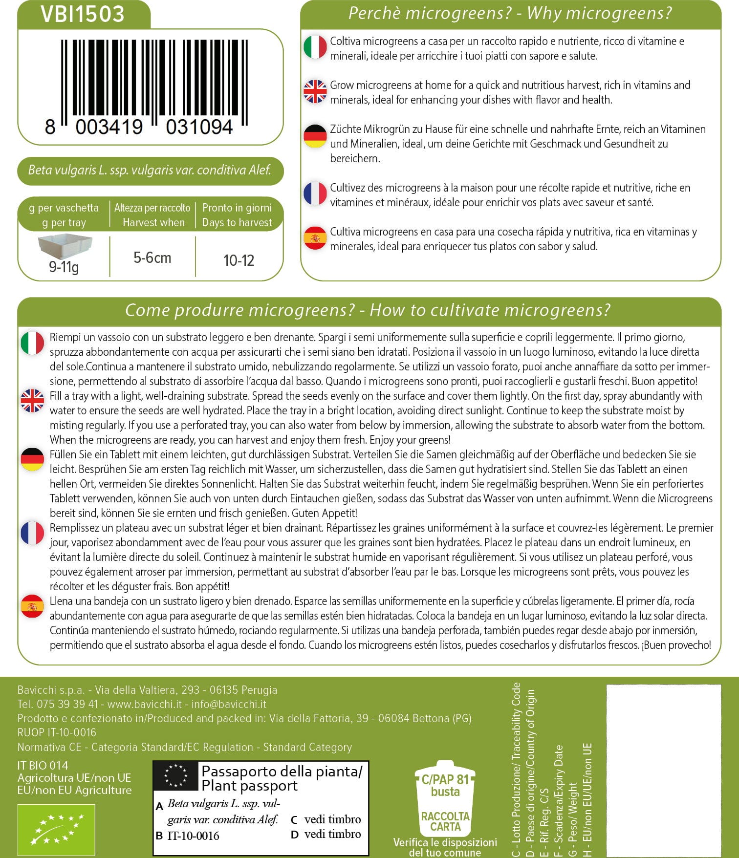 Bavicchi Bio klíčky „Mangold Chioggia“, 15 g