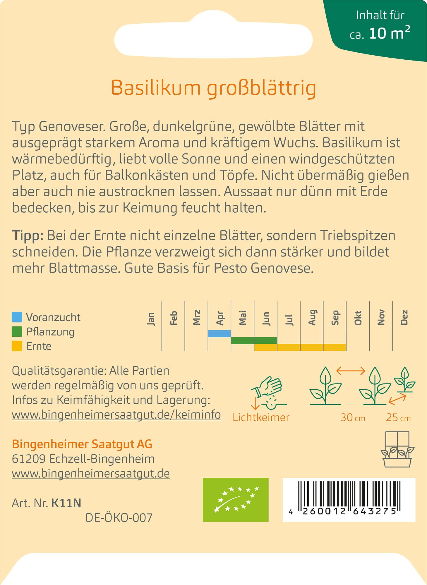 Bingenheimer Saatgut Bazalka "velkolistá"
