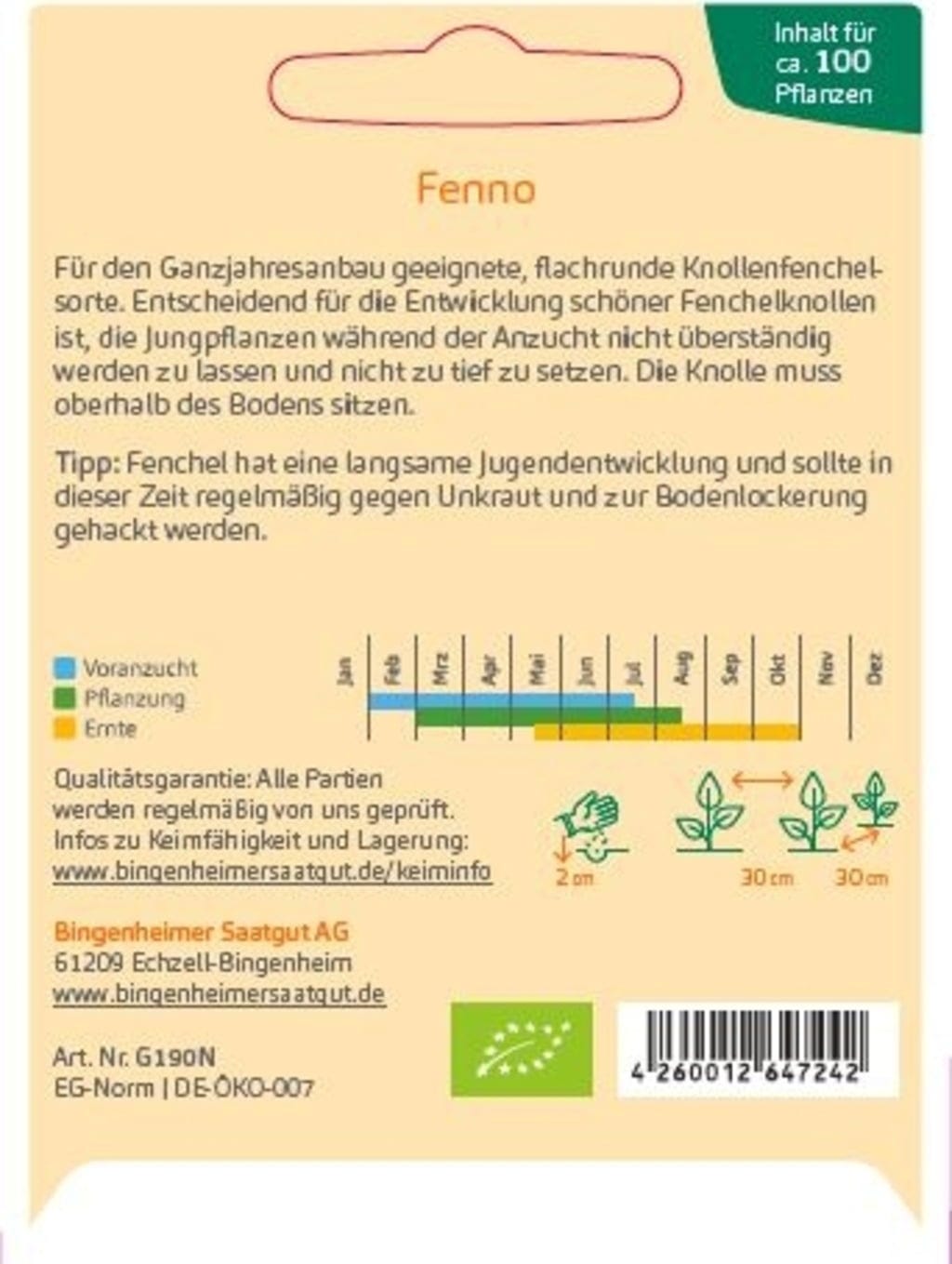 Bingenheimer Saatgut Fenykl hlíznatý "Fenno" 80,00 Kč