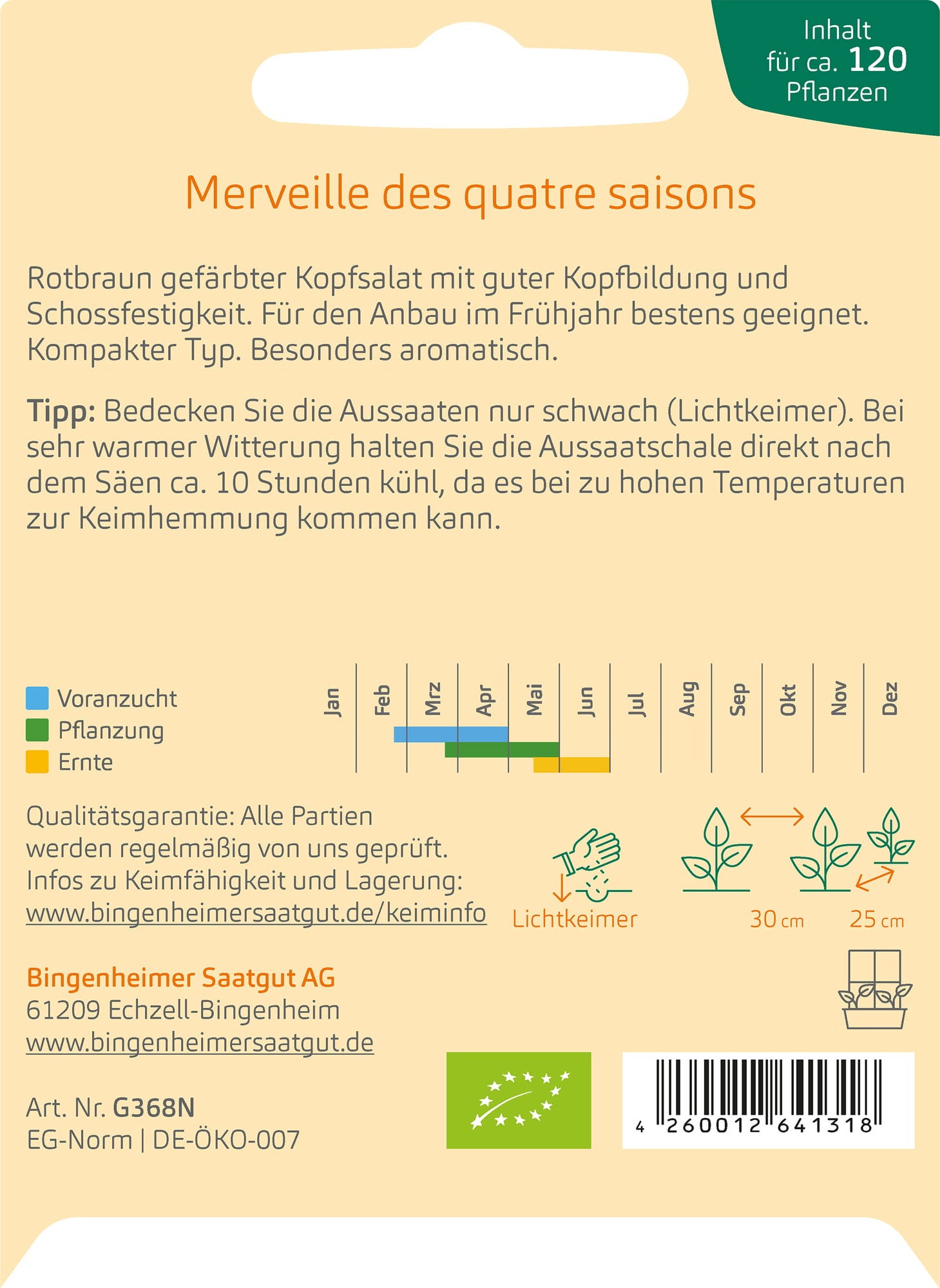 Bingenheimer Saatgut Hlávkový salát "Merveille des quatre saisons"