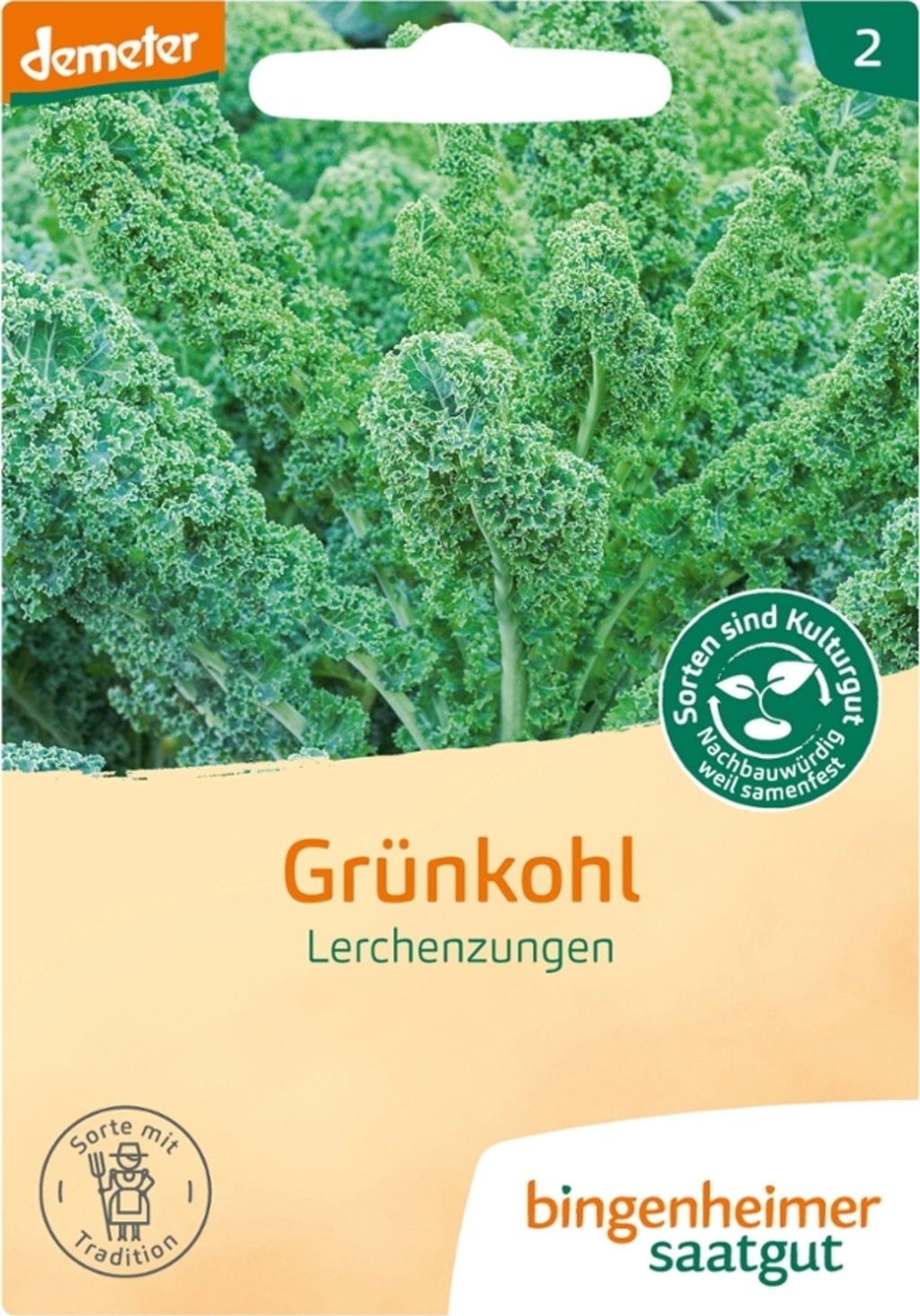 Odrůda kadeřávku "Lerchenzungen" dorůstá střední výšky a má jemně zkadeřené, úzké listy. Sklizeň probíhá v zimě, po příchodu prvních mrazů - teprve poté rostlina získá svou vynikající zelnou chuť.