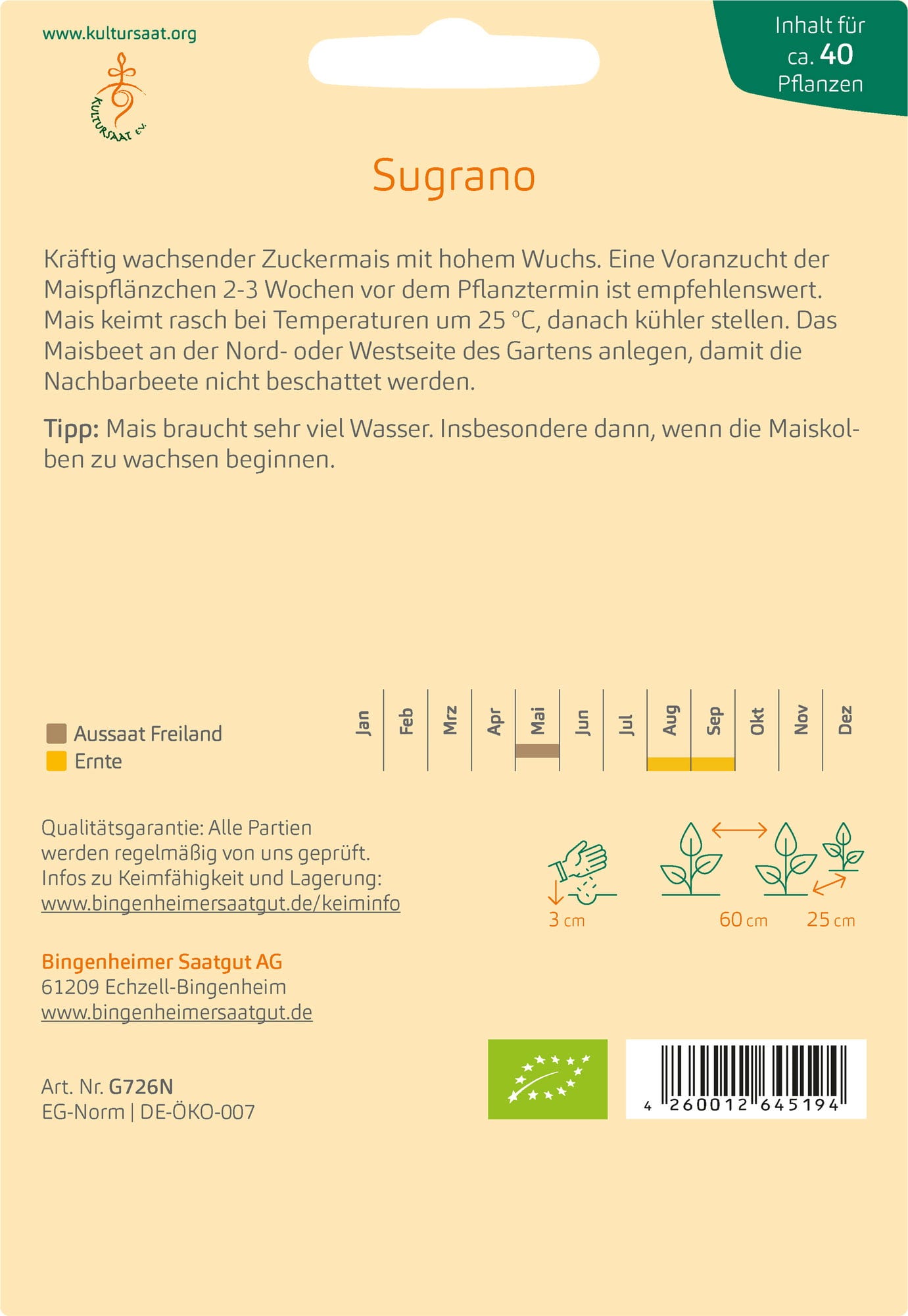 Bingenheimer Saatgut Kukuřice cukrová "Sugrano"