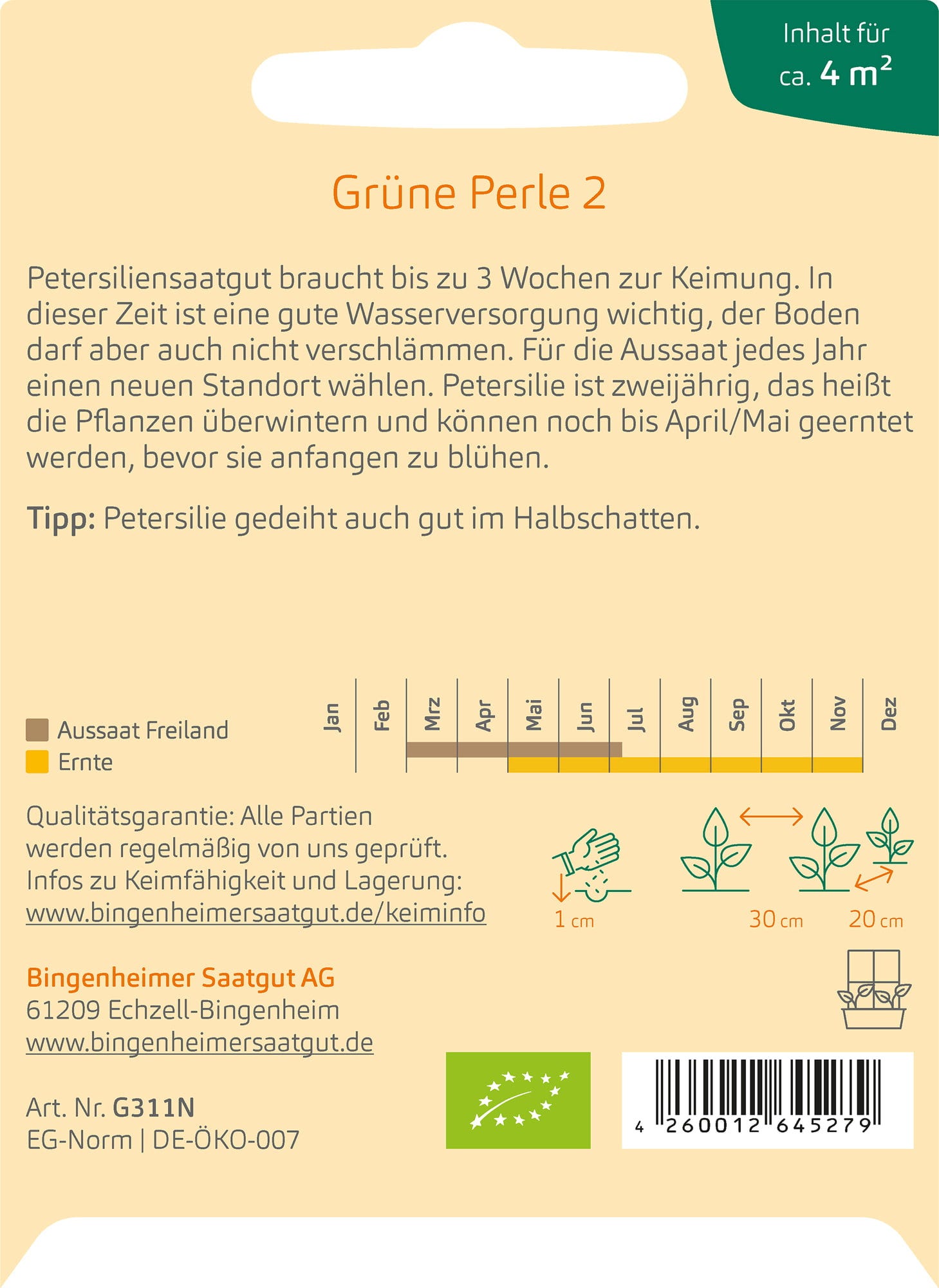 Bingenheimer Saatgut Petržel "Grüne Perle 2"