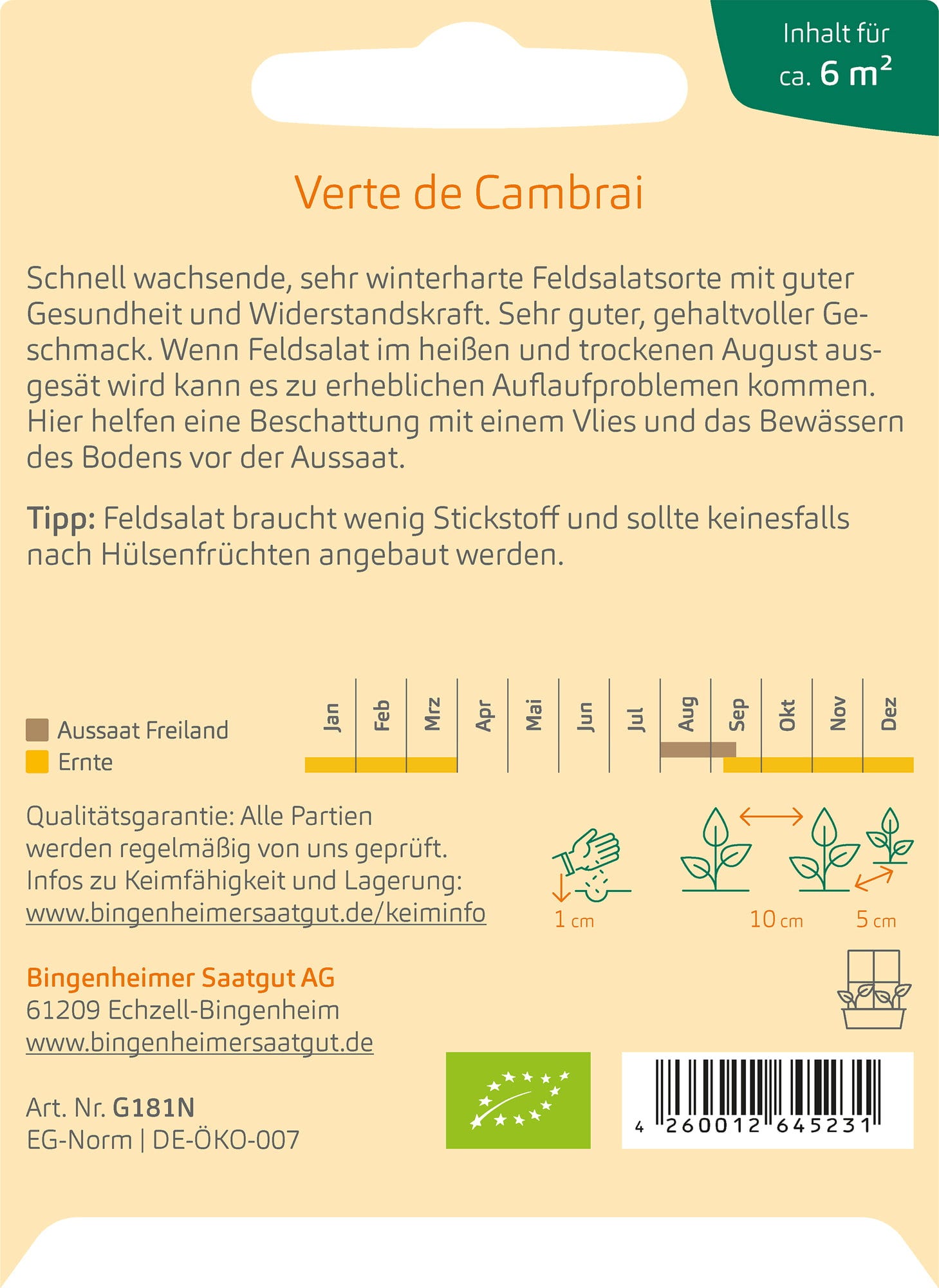 Bingenheimer Saatgut Polníček "Verte de Cambrai"
