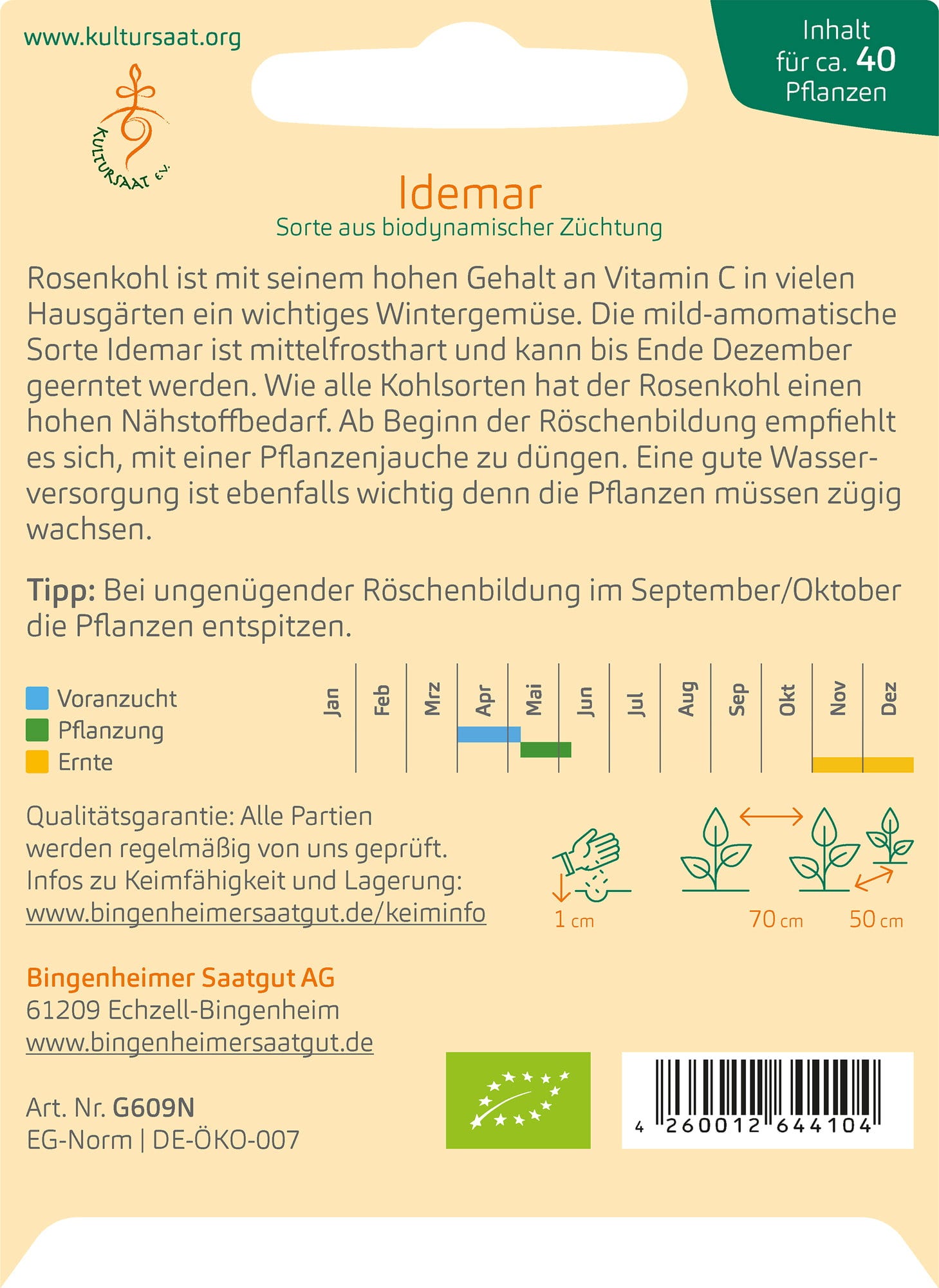 Bingenheimer Saatgut Růžičková kapusta "Idemar"