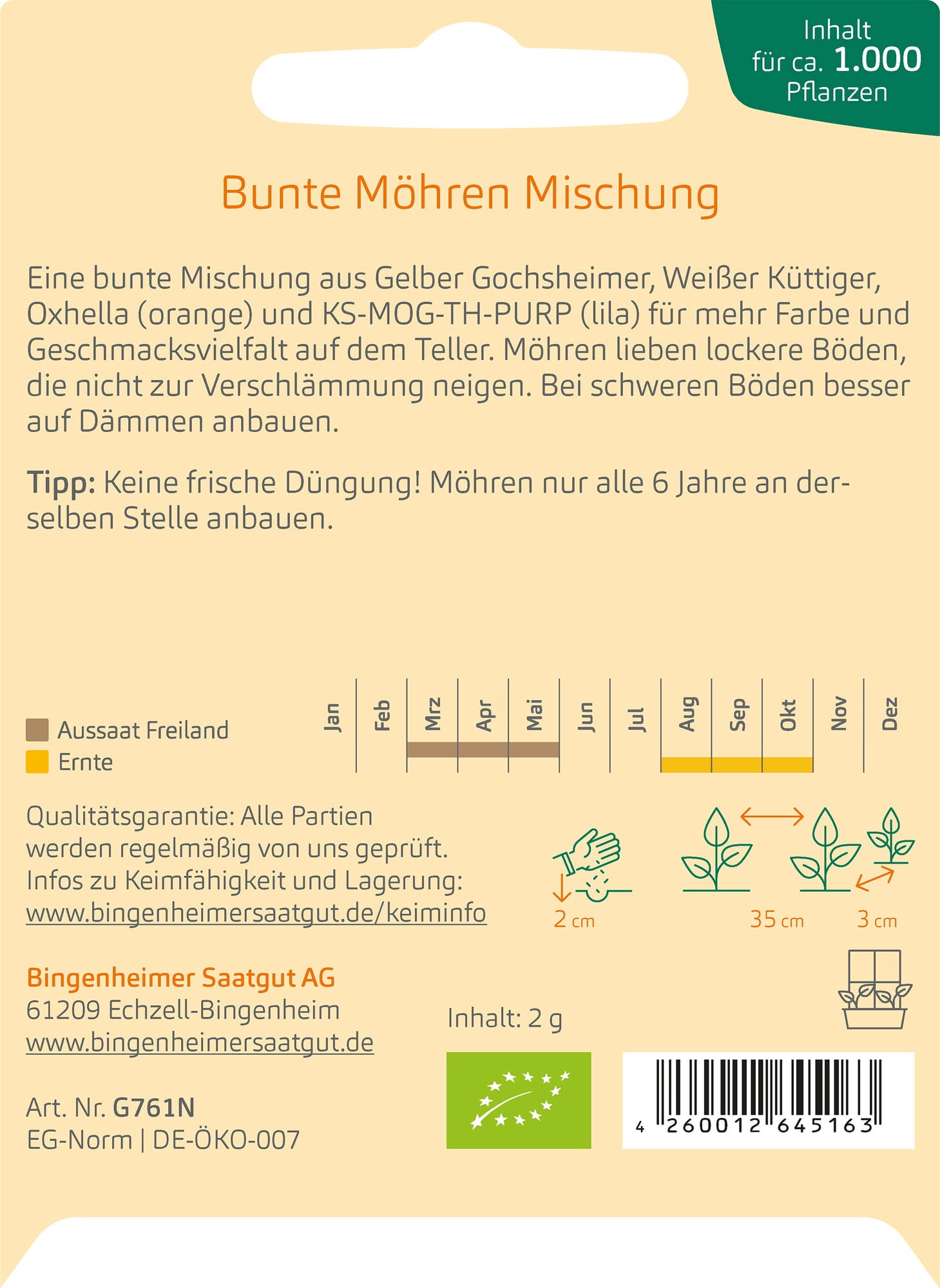 Bingenheimer Saatgut Směs mrkví "Karotten-Vielfalt"