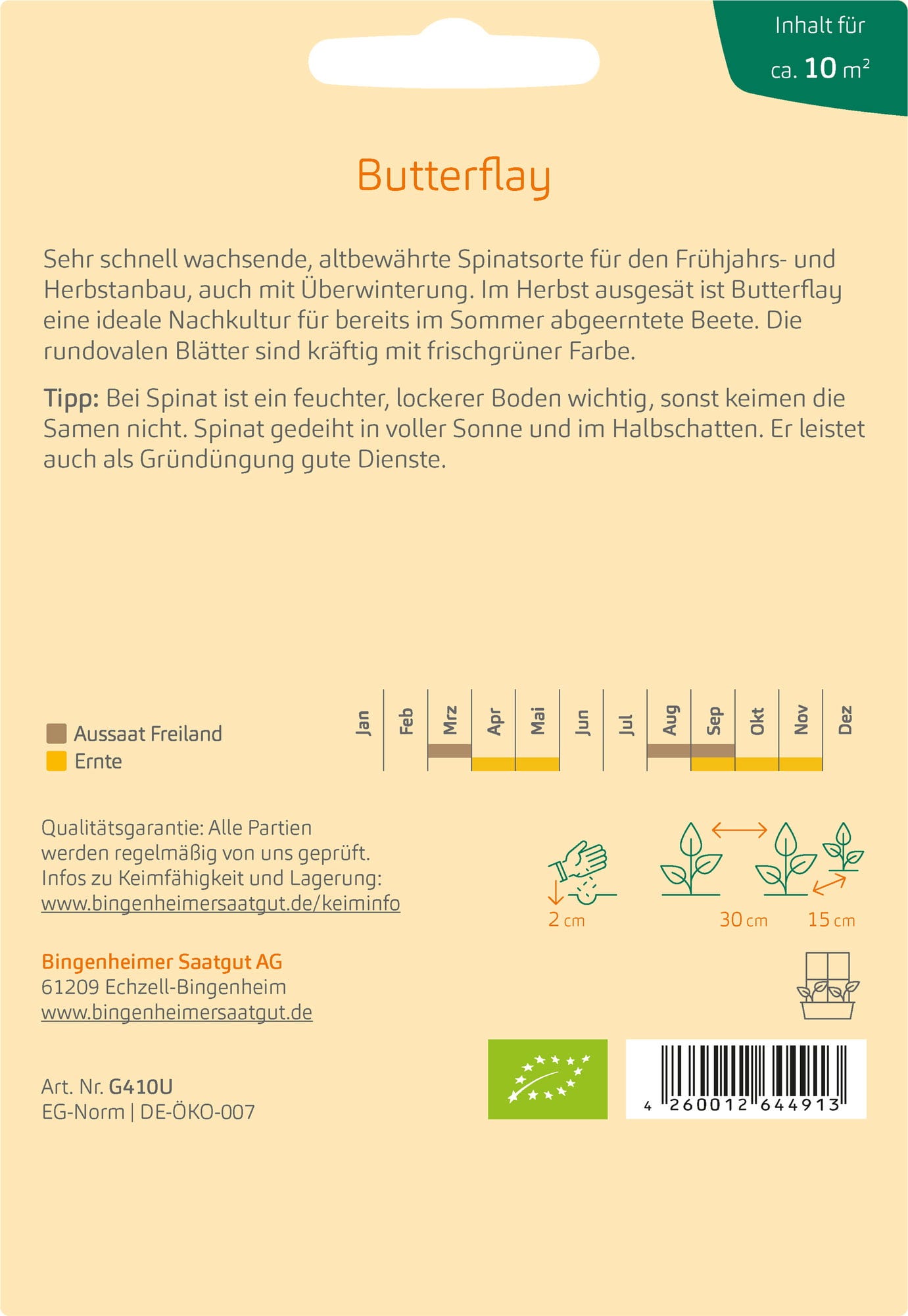 Bingenheimer Saatgut Špenát "Butterflay"