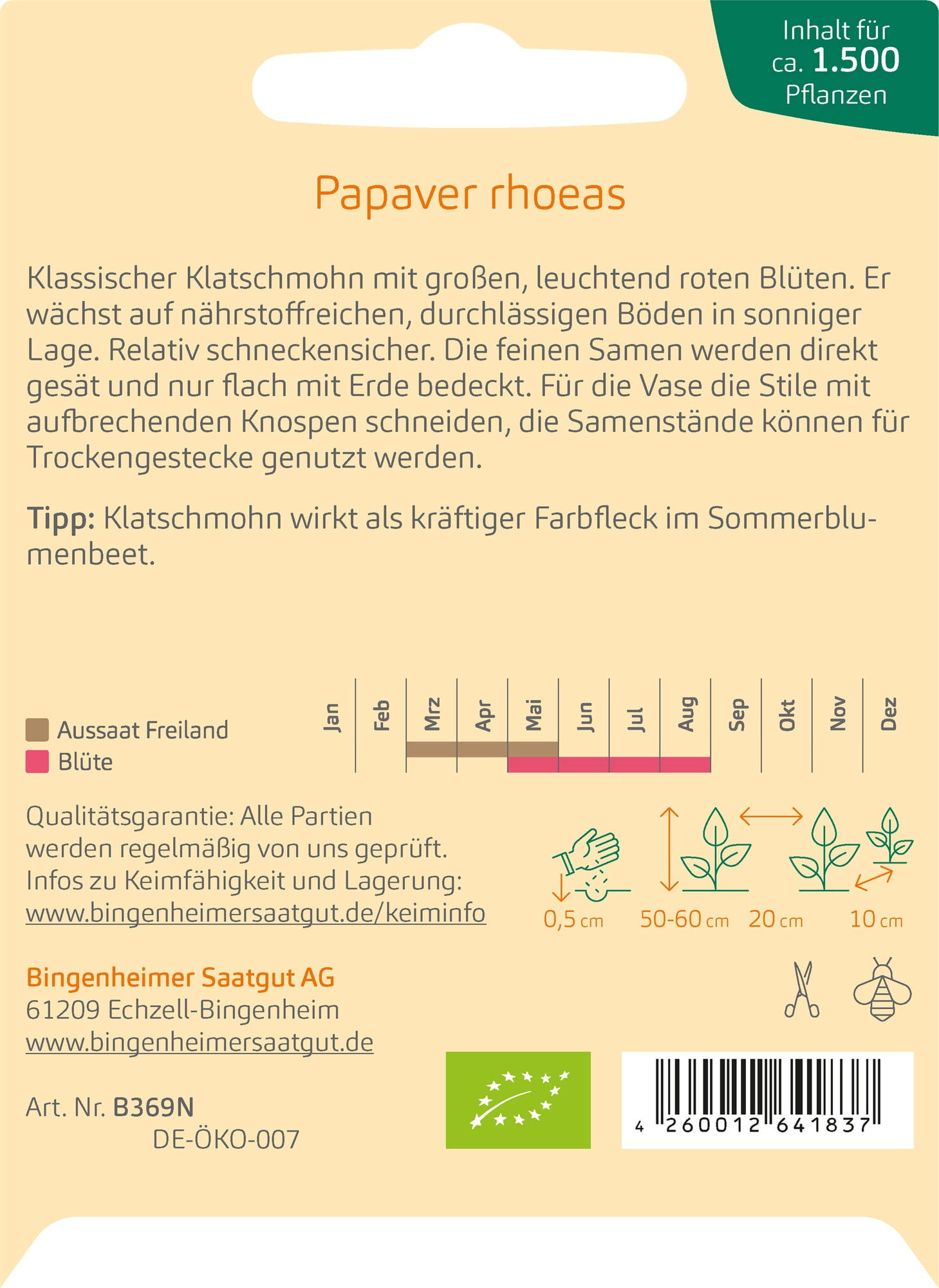 Bingenheimer Saatgut Vlčí mák