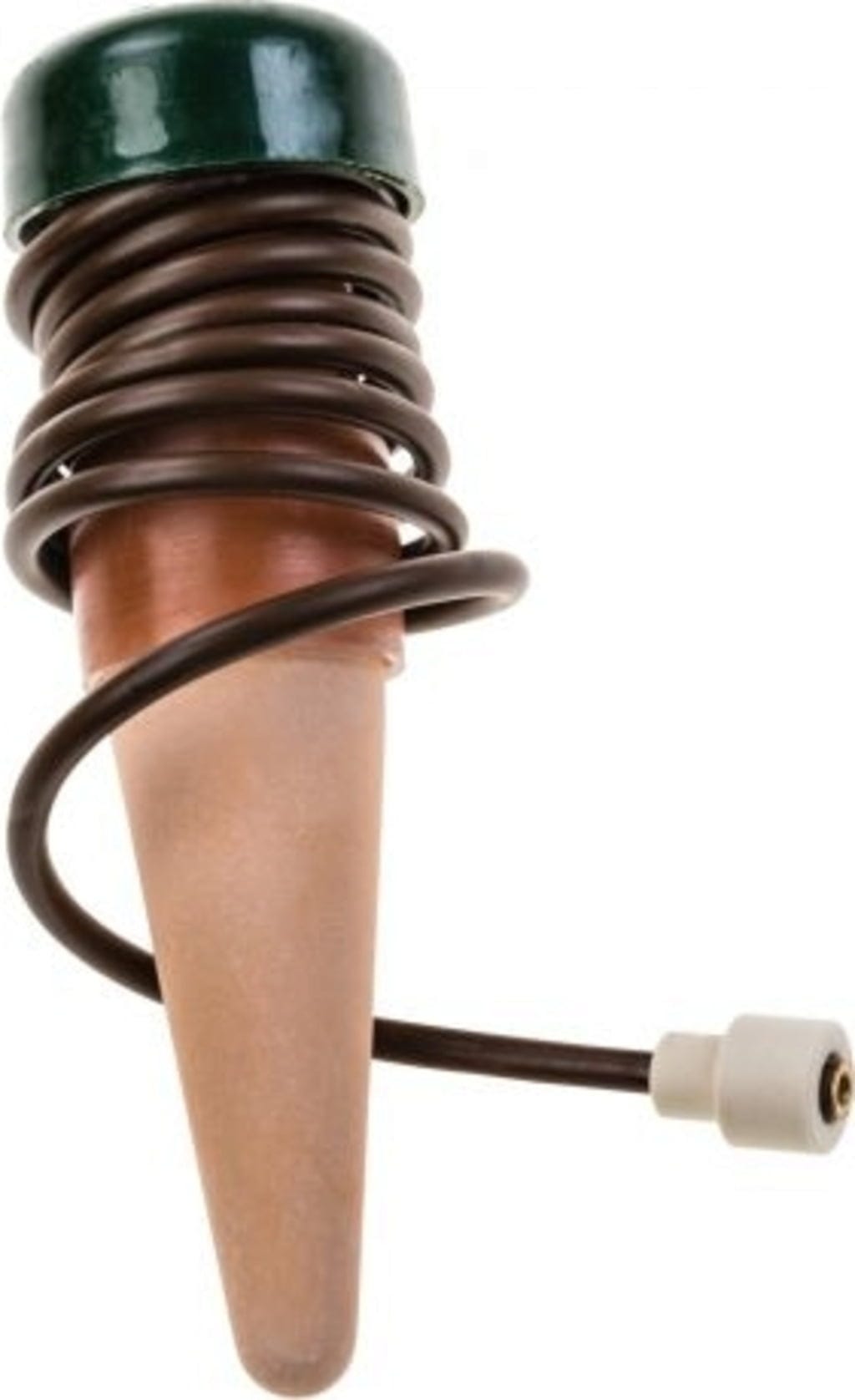 Před naplněním vodou až po okraj a uzavřením vložte hliněný kužel na několik minut do vody. Dbejte na pečlivé odvzdušnění sací hadice. Zasuňte hliněný kužel propustnou špičkou do půdy. U větších květináčů byste měli použít 2 ks, u truhlíků 1 ks každých 15 až 20 cm.