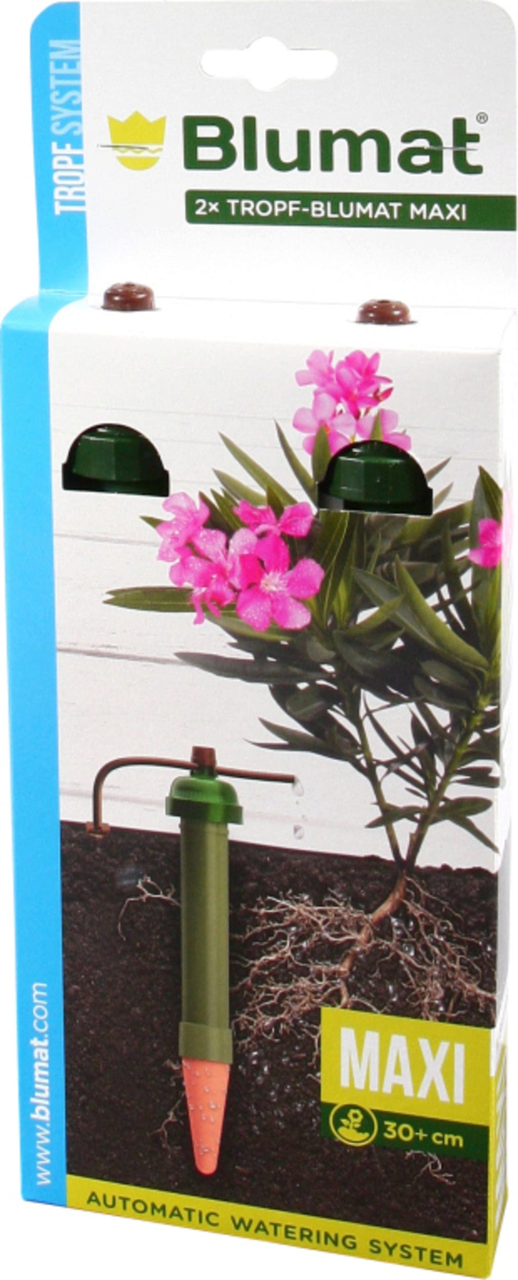 Tropf-Blumat Maxi funguje jako regulátor a kapkovač stejně jako standardní Tropf-Blumat, možná hloubka zasunutí však činí 15–18 cm. Díky tomu lze nyní lépe snímat a regulovat vlhkost v blízkosti kořenů u rostlin s hlubším kořenovým balem.