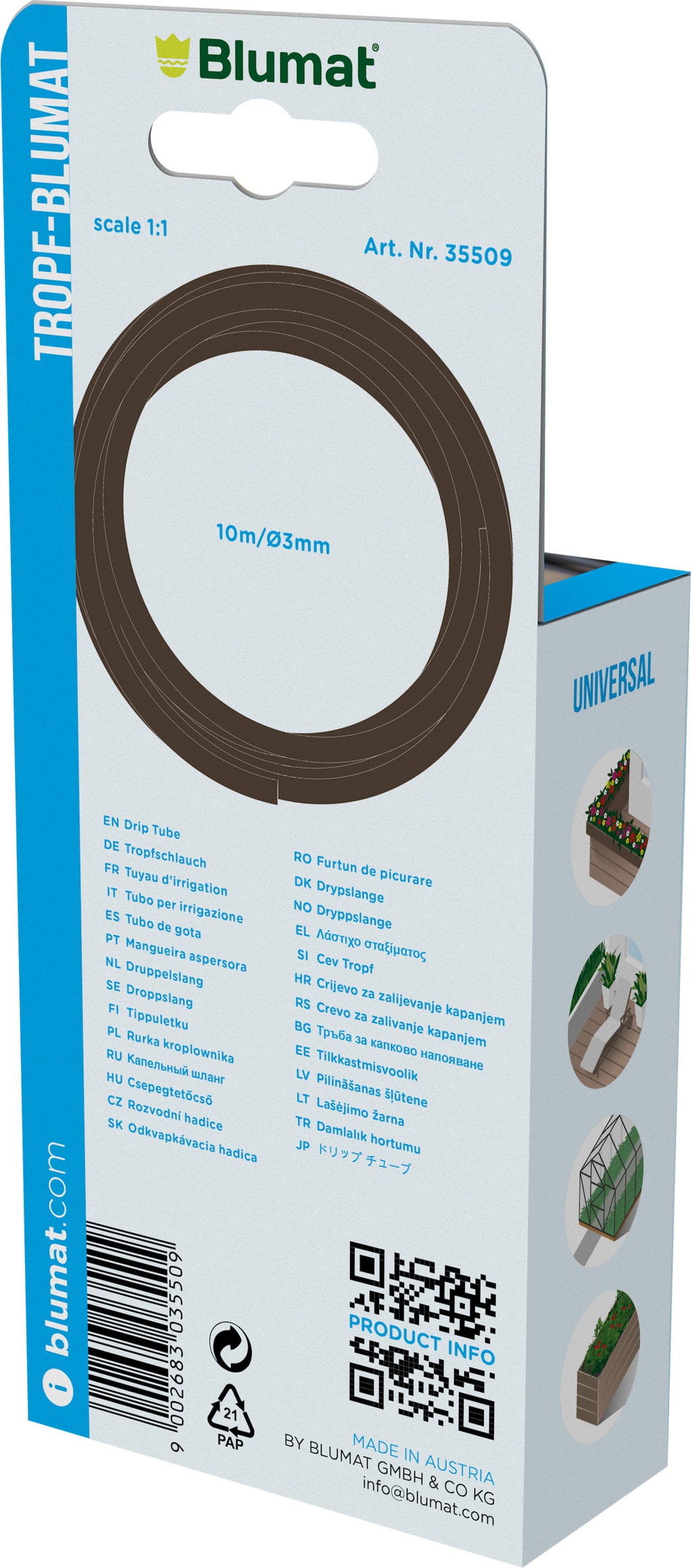Velmi flexibilní, hnědá kapací hadice ze silikonu. Je stlačována nebo uvolňována ventilem Tropf-Blumat. Lze ji použít jako malou přívodní hadici pro jednotlivé květináče nebo rostliny v nádobách, resp. jako mezikus řetězce kapkovačů.