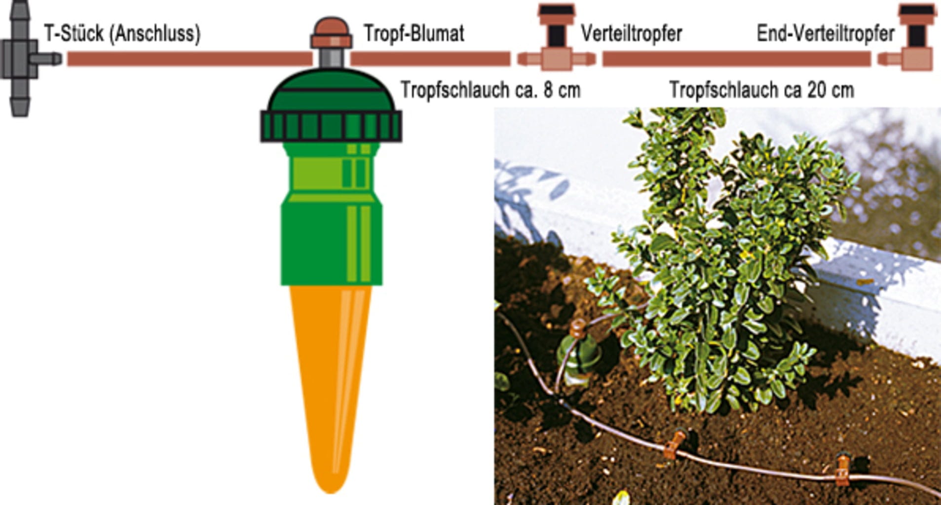 Velmi flexibilní, hnědá kapací hadice ze silikonu. Je stlačována nebo uvolňována ventilem Tropf-Blumat. Lze ji použít jako malou přívodní hadici pro jednotlivé květináče nebo rostliny v nádobách, resp. jako mezikus řetězce kapkovačů.