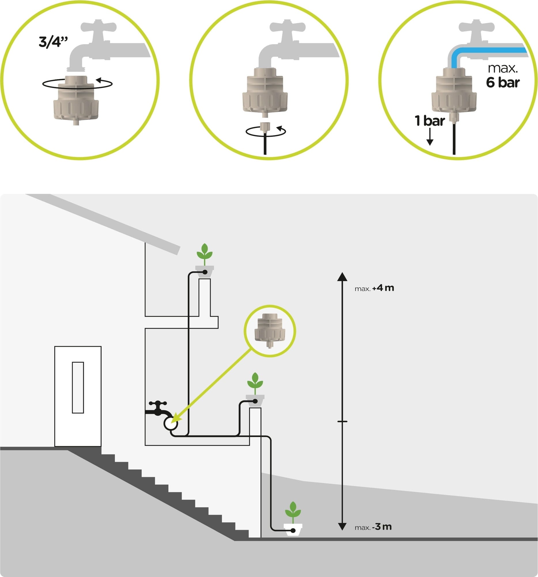 - Velikost přípojky: 3/4"