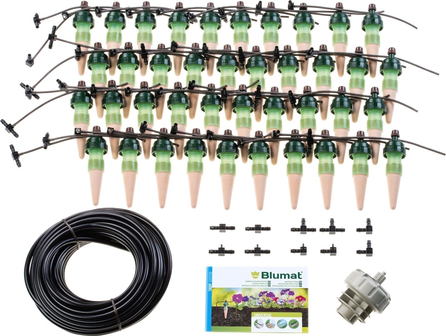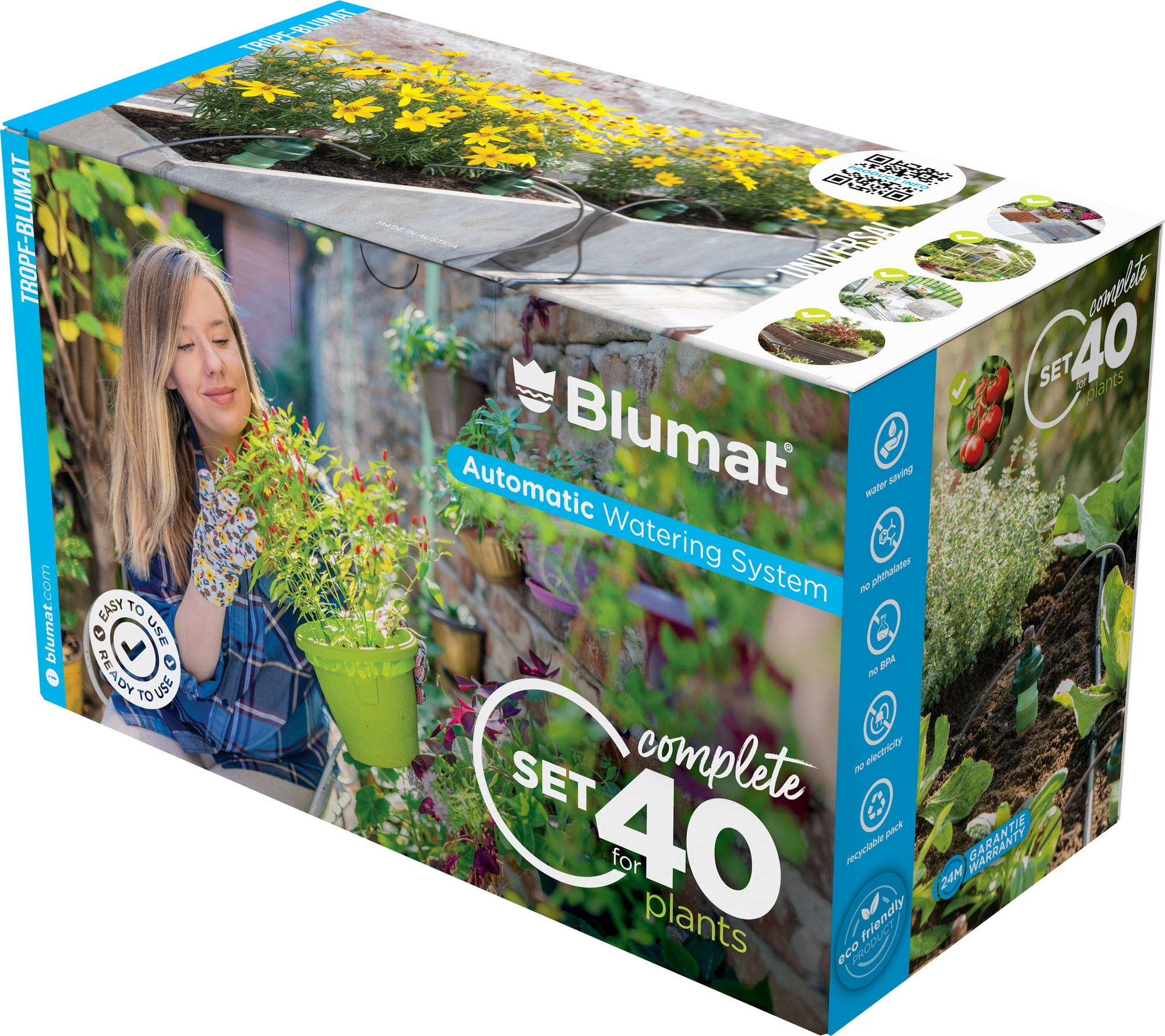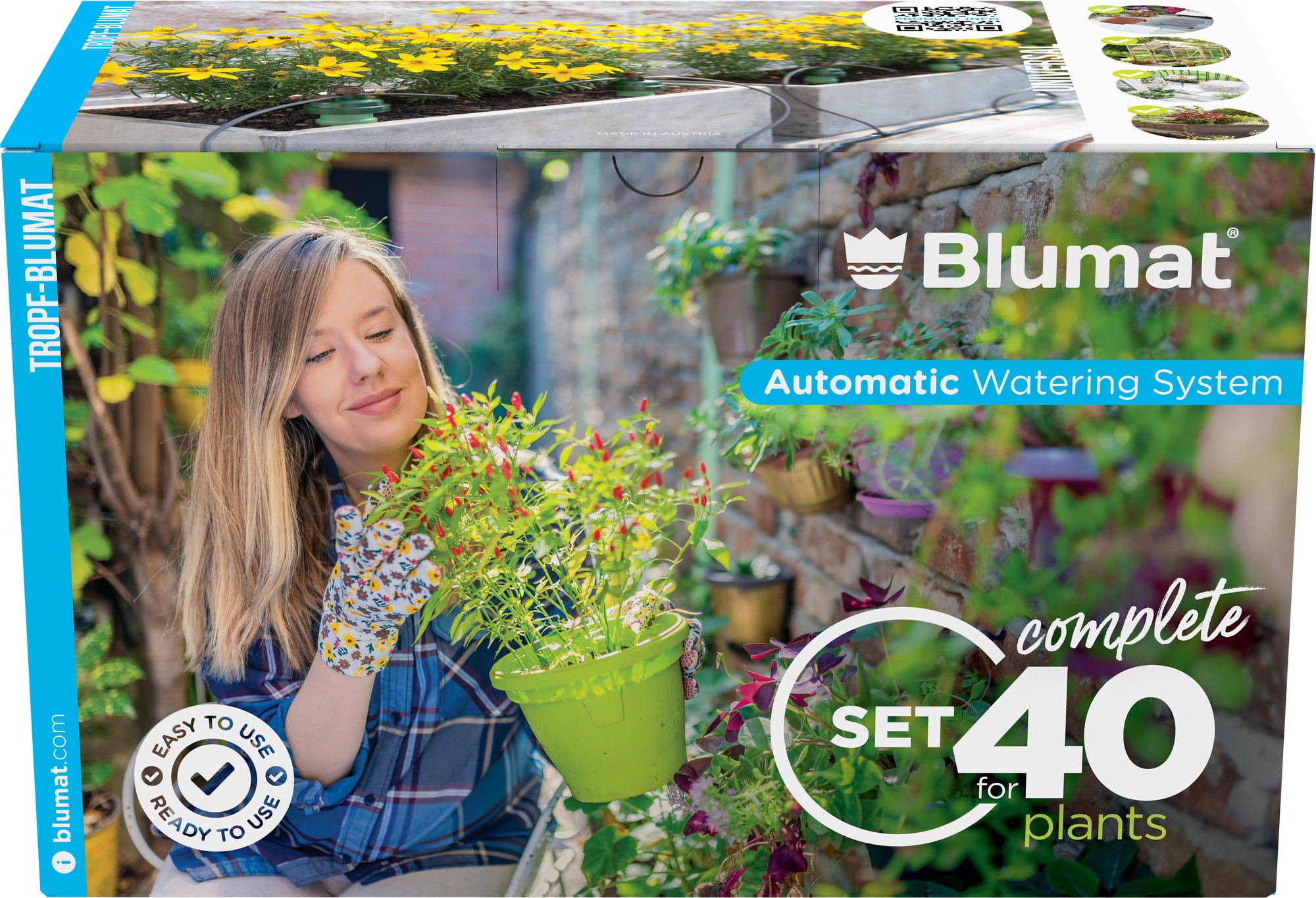 Ať už jde o balkonové truhlíky, květináče, nádoby, vyvýšený záhon nebo skleník, ať už o květiny, zeleninu nebo bylinky, jako plně automatický zavlažovací systém zásobuje Tropf-Blumat vodou až 40 rostlin. Máte ještě více žíznivých rostlinek? Ani to není problém, protože díky flexibilnímu stavebnicovému systému a velkému množství volitelně dostupného příslušenství lze k Tropf-Blumat připojit až 500 rostlin. Můžete se tak uvolněně opřít a užívat si léto plnými doušky, podle hesla: houpací síť místo konve!