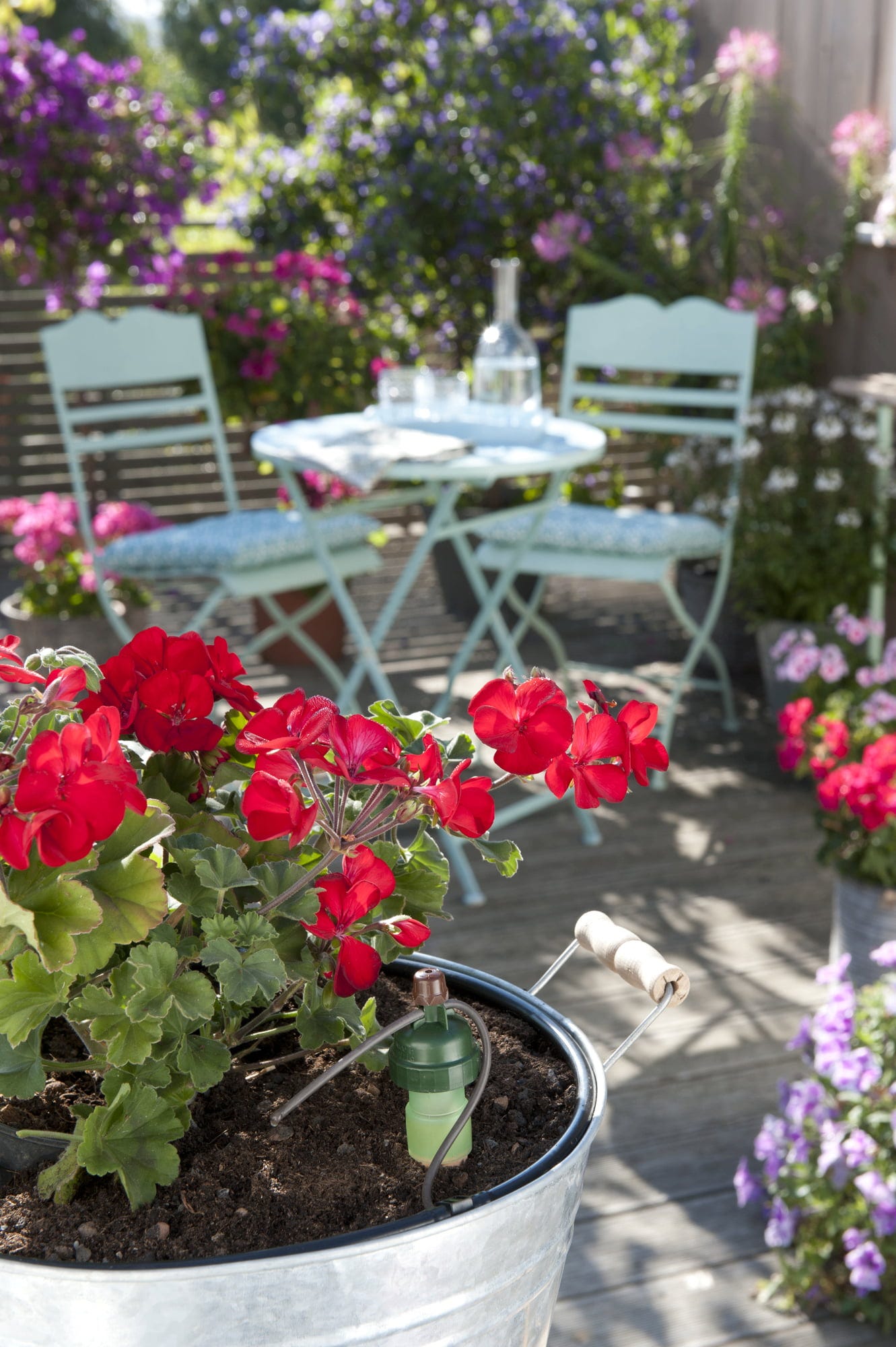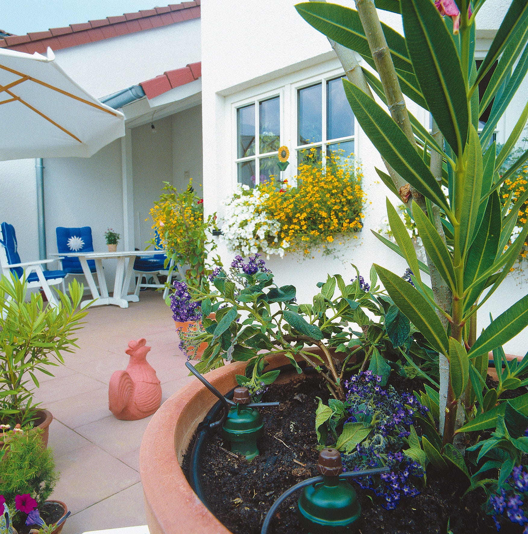 Kdo by neznal problém, že je nutné neustále dbát na dostatečné zásobování balkonových rostlin a rostlin v nádobách vodou? Zejména při vysokých teplotách nebo delší nepřítomnosti. Právě zde je Tropf-Blumat správnou volbou pro všechny milovníky bohatě kvetoucích rostlin na balkoně a terase i ve skleníku a vyvýšeném záhonu. Inovativní zavlažovací systém se totiž spolehlivě postará o zásobování Vašich rostlin – zcela bez zdlouhavého zalévání, automaticky, jednoduše a nekomplikovaně.