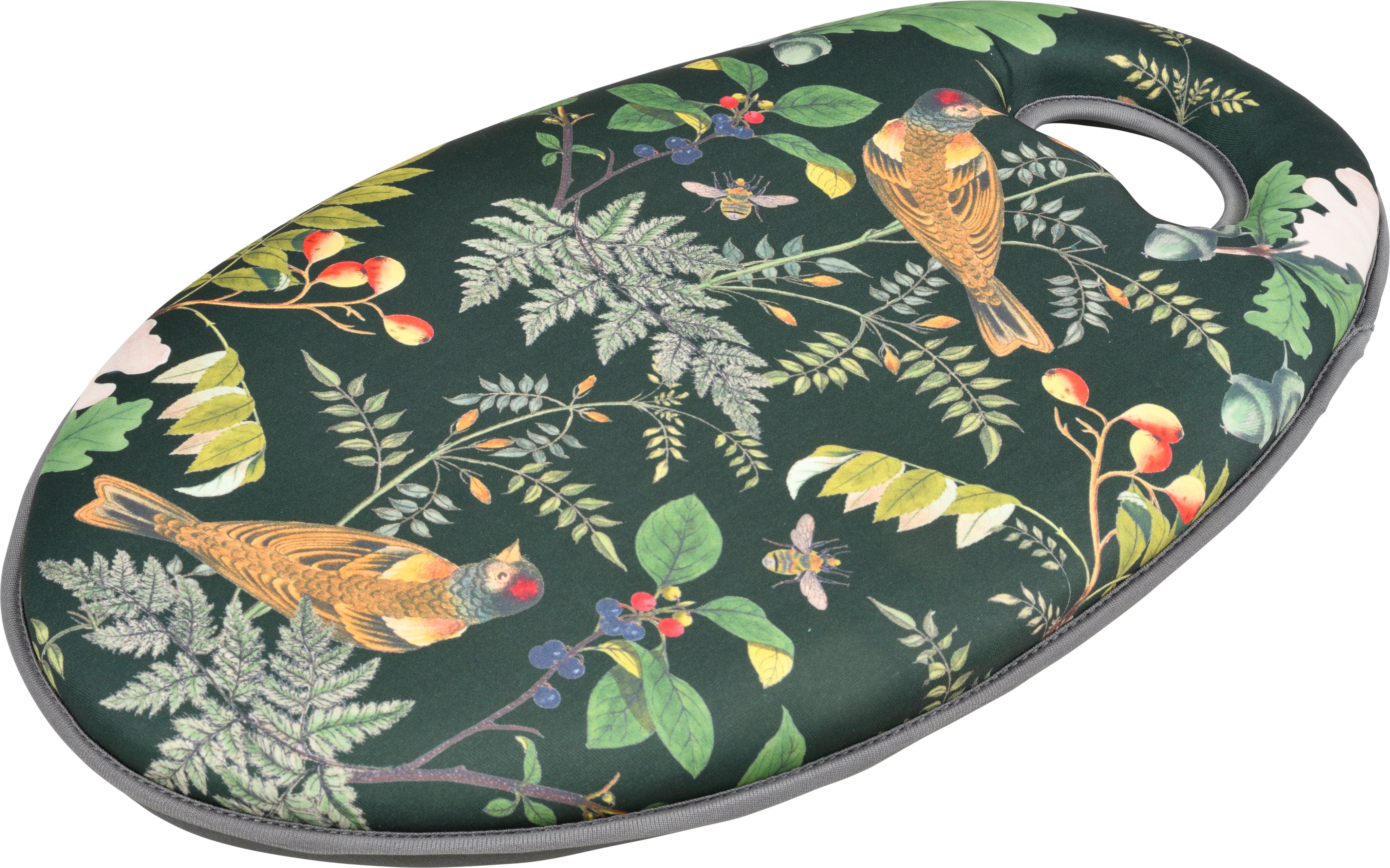 Elegantní design „Woodland Wonders“ s tmavě zelenými odstíny a historickými lesními motivy z archivů RHS navíc činí z této podložky výrazný prvek při každé práci na zahradě.