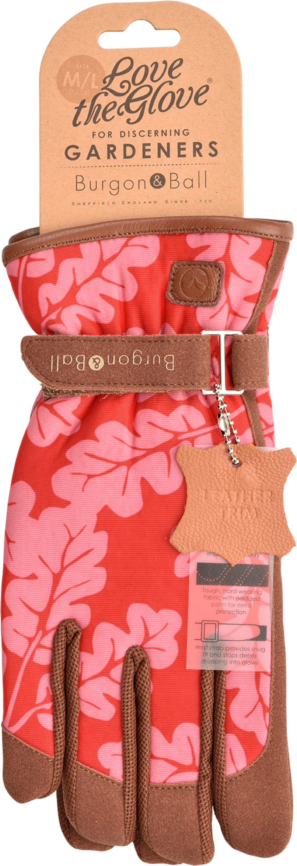 Burgon & Ball Zahradní rukavice „Oak Leaf” - Poppy, S/M