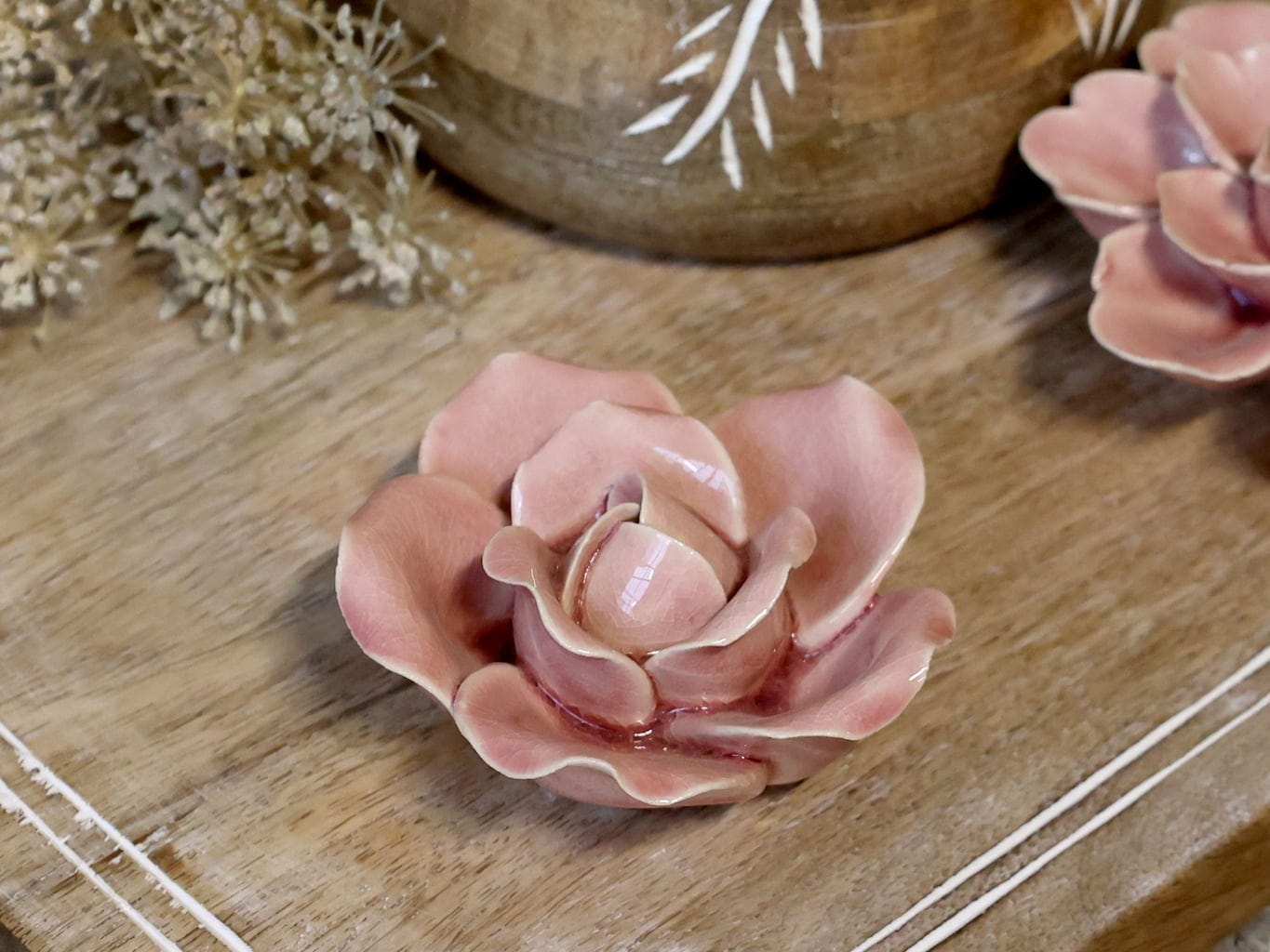 Tato jemná dekorační květina v něžné růžové barvě dodá každé místnosti elegantní, hravý tón. Ať už jako poutavý prvek na komodě, v polici nebo jako dekorace na stůl – keramický kus vytváří stylové akcenty a perfektně se hodí k moderním i romantickým stylům zařízení.