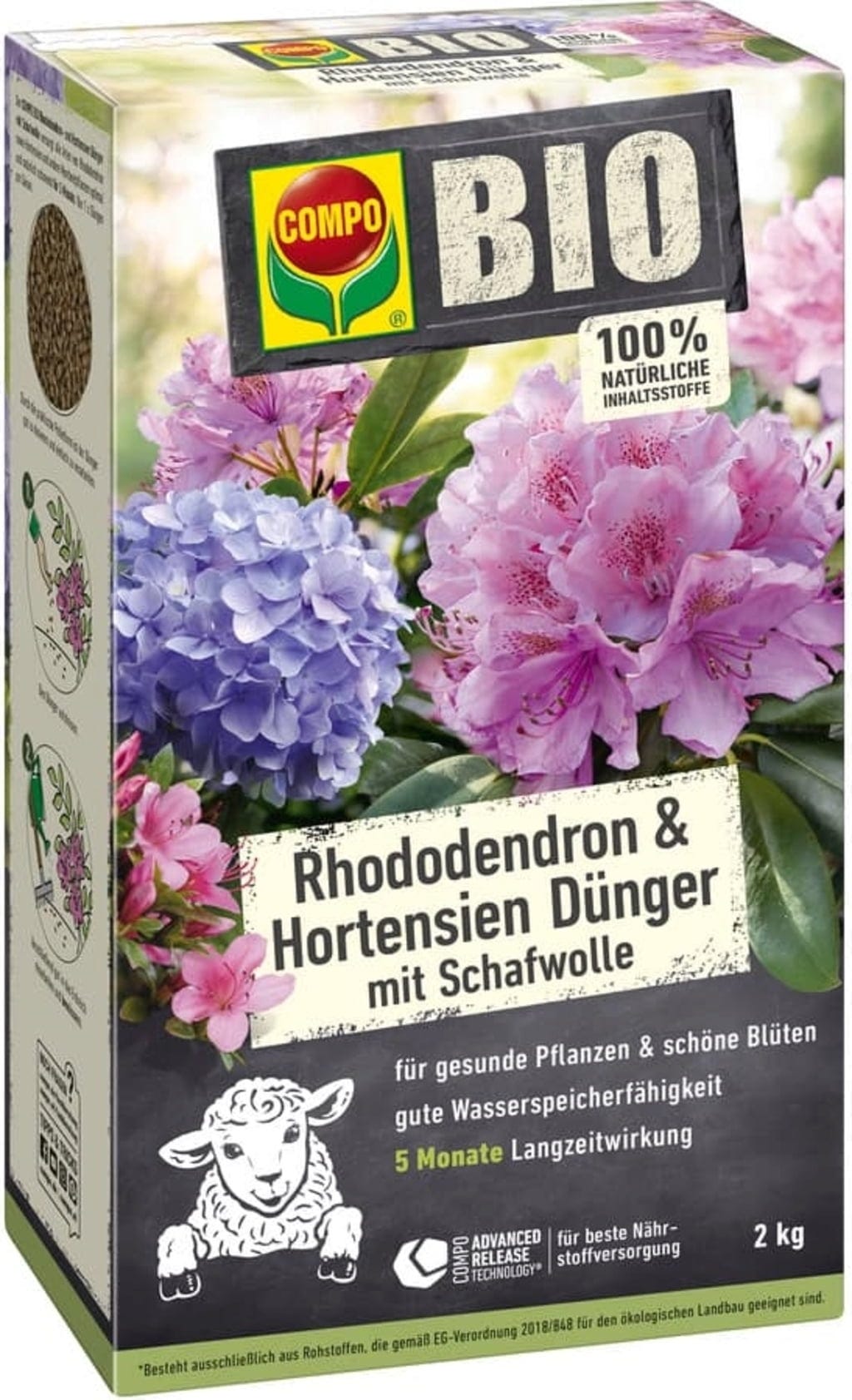COMPO BIO hnojivo pro rododendrony a hortenzie s ovčí vlnou, 2 kg