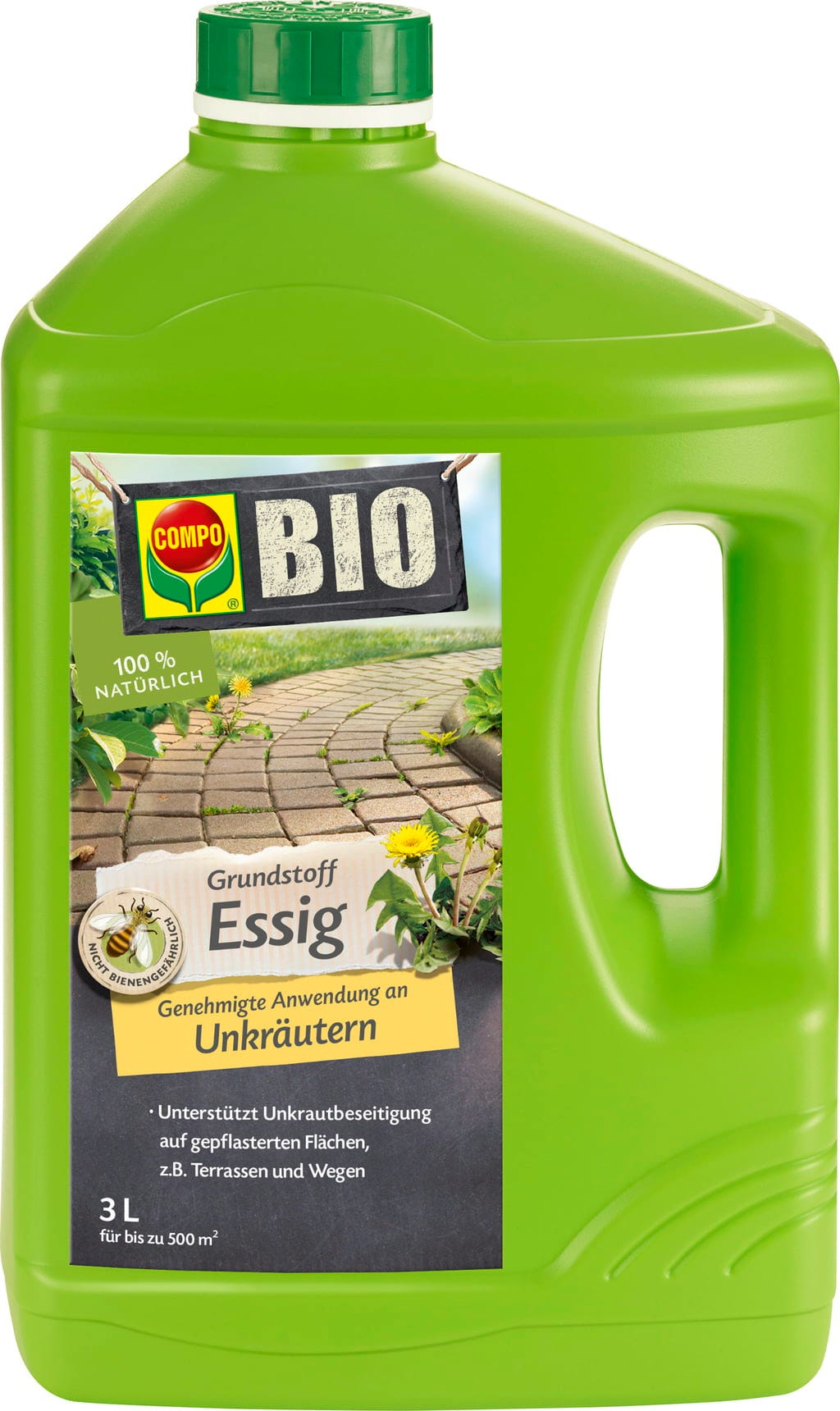 Schválená základní látka ocet účinně pomáhá při odstraňování plevele na chodnících, terasách a zpevněných plochách. Kromě toho se skvěle hodí k dezinfekci zahradního řezného nářadí. Díky svému přírodnímu účinku a ekologickému použití zajišťuje čisté a upravené plochy - zcela bez chemických zbytků!