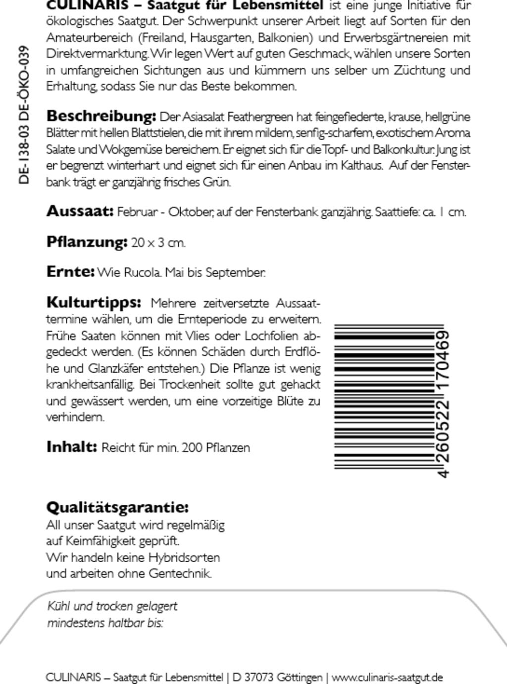 | Výrobce: | Culinaris - Saatgut für Lebensmittel, Thiegasse 5, 37124, Rosdorf, Německo, info@culinaris-saatgut.de, culinaris-saatgut.de |