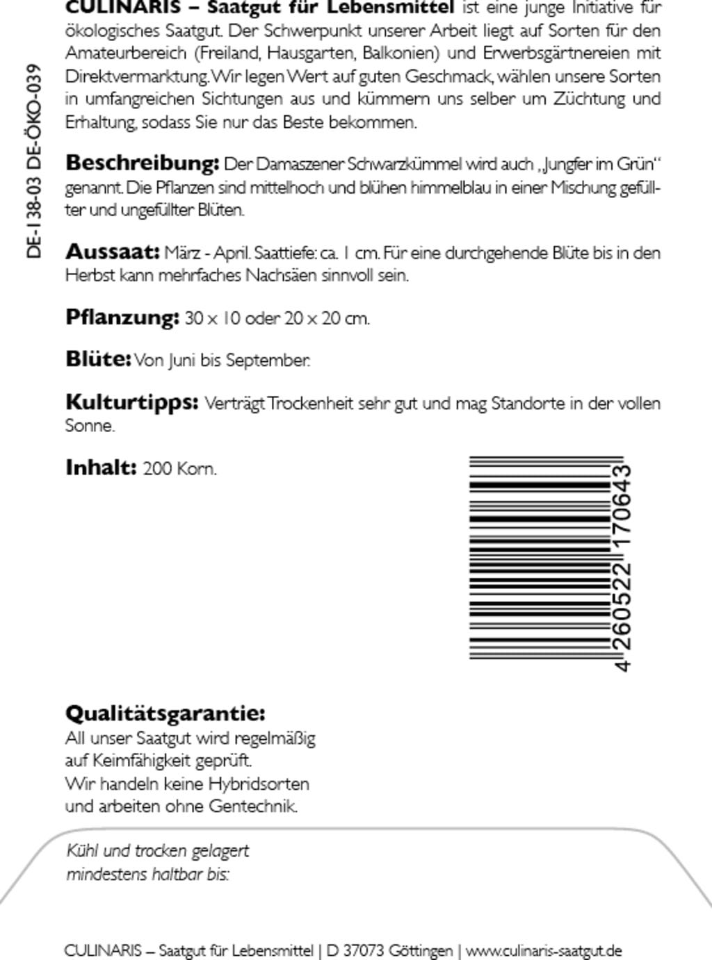 Culinaris Bio černucha damašská Oxford Blue