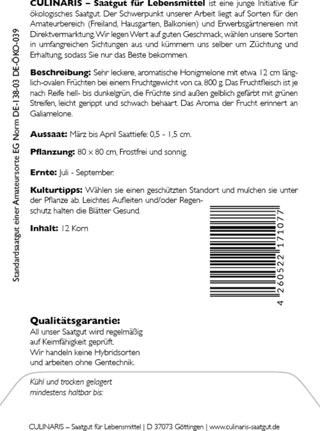 | Výrobce: | Culinaris - Saatgut für Lebensmittel, Thiegasse 5, 37124, Rosdorf, Německo, info@culinaris-saatgut.de, culinaris-saatgut.de |