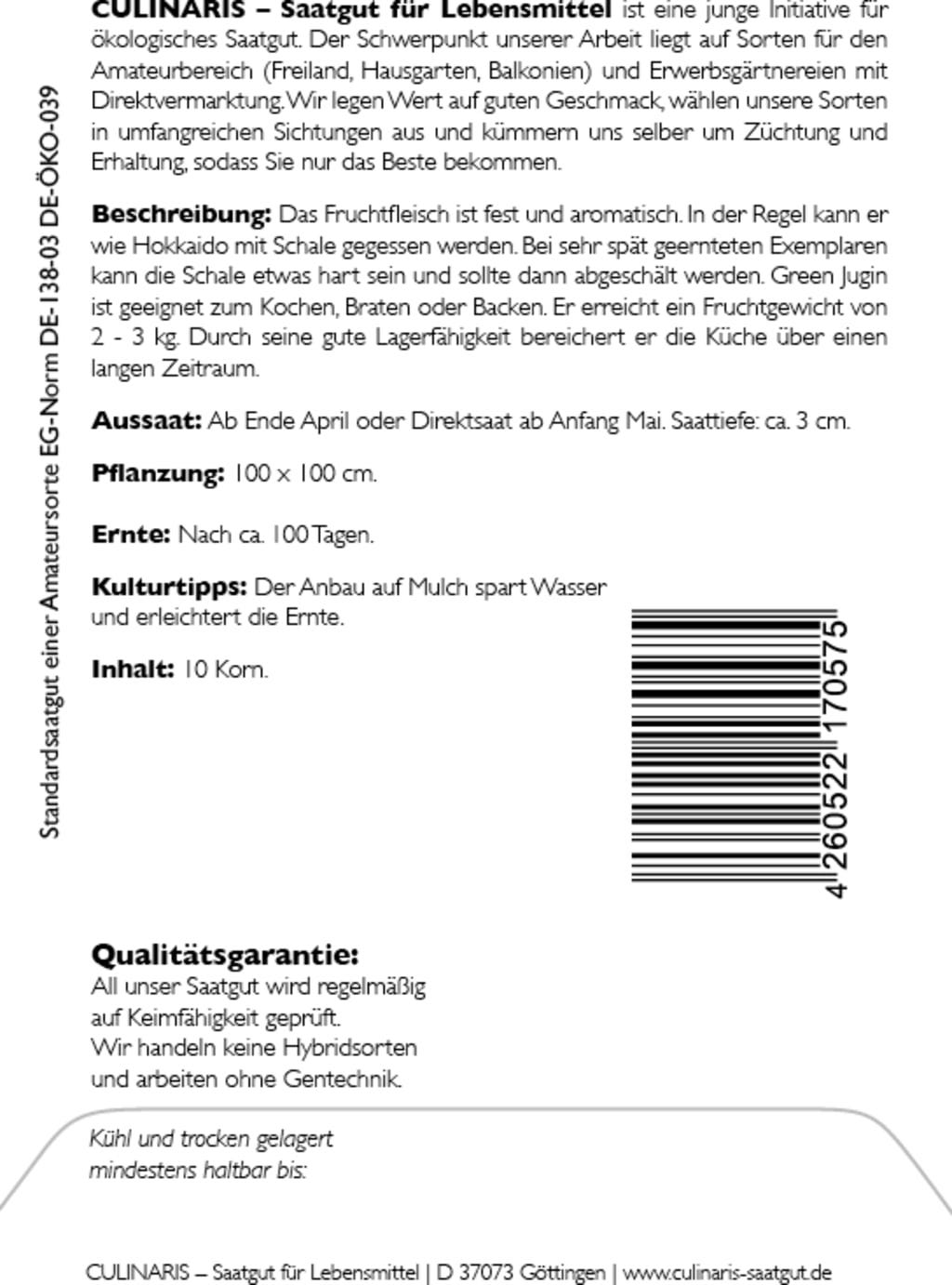 | Výrobce: | Culinaris - Saatgut für Lebensmittel, Thiegasse 5, 37124, Rosdorf, Německo, info@culinaris-saatgut.de, culinaris-saatgut.de |