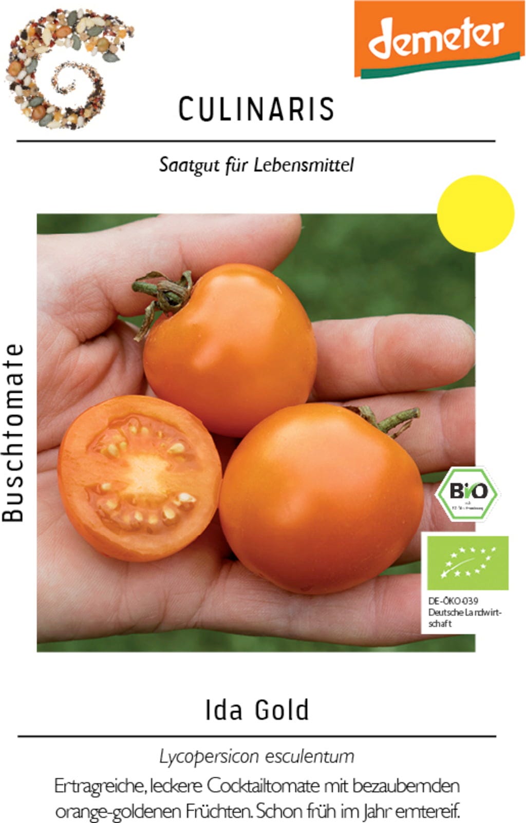 Ida Gold je sladké, zlatožluté koktejlové rajče s raně dozrávajícími plody. Roste kompaktně a skvěle se hodí do květináčů, na balkon nebo na záhon. Rostlina spolehlivě plodí velké množství aromatických plodů. Od konce června lze sklizeň konzumovat přímo v čerstvém stavu.
