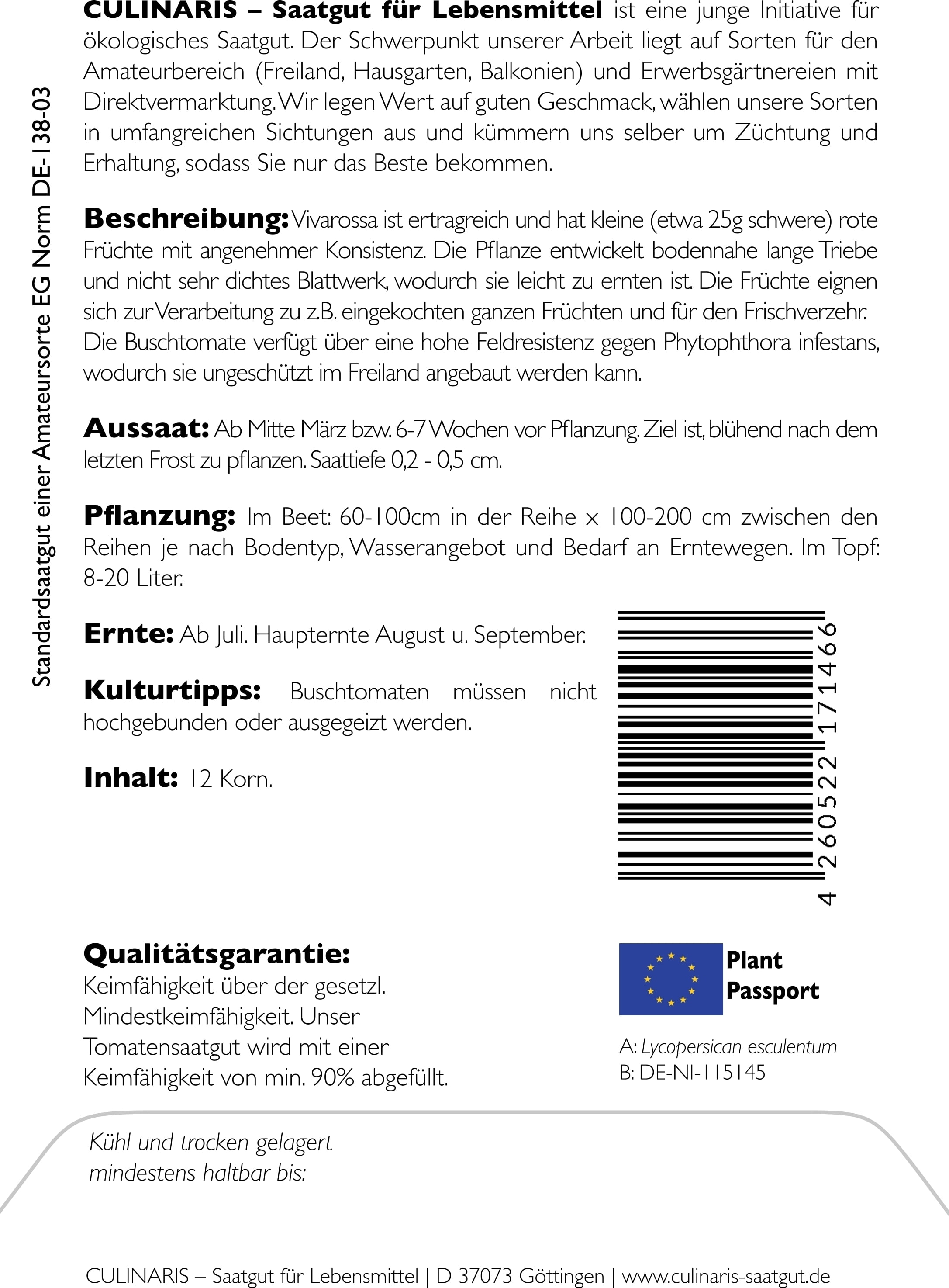 | Výrobce: | Culinaris - Saatgut für Lebensmittel, Thiegasse 5, 37124, Rosdorf, Německo, info@culinaris-saatgut.de, culinaris-saatgut.de |