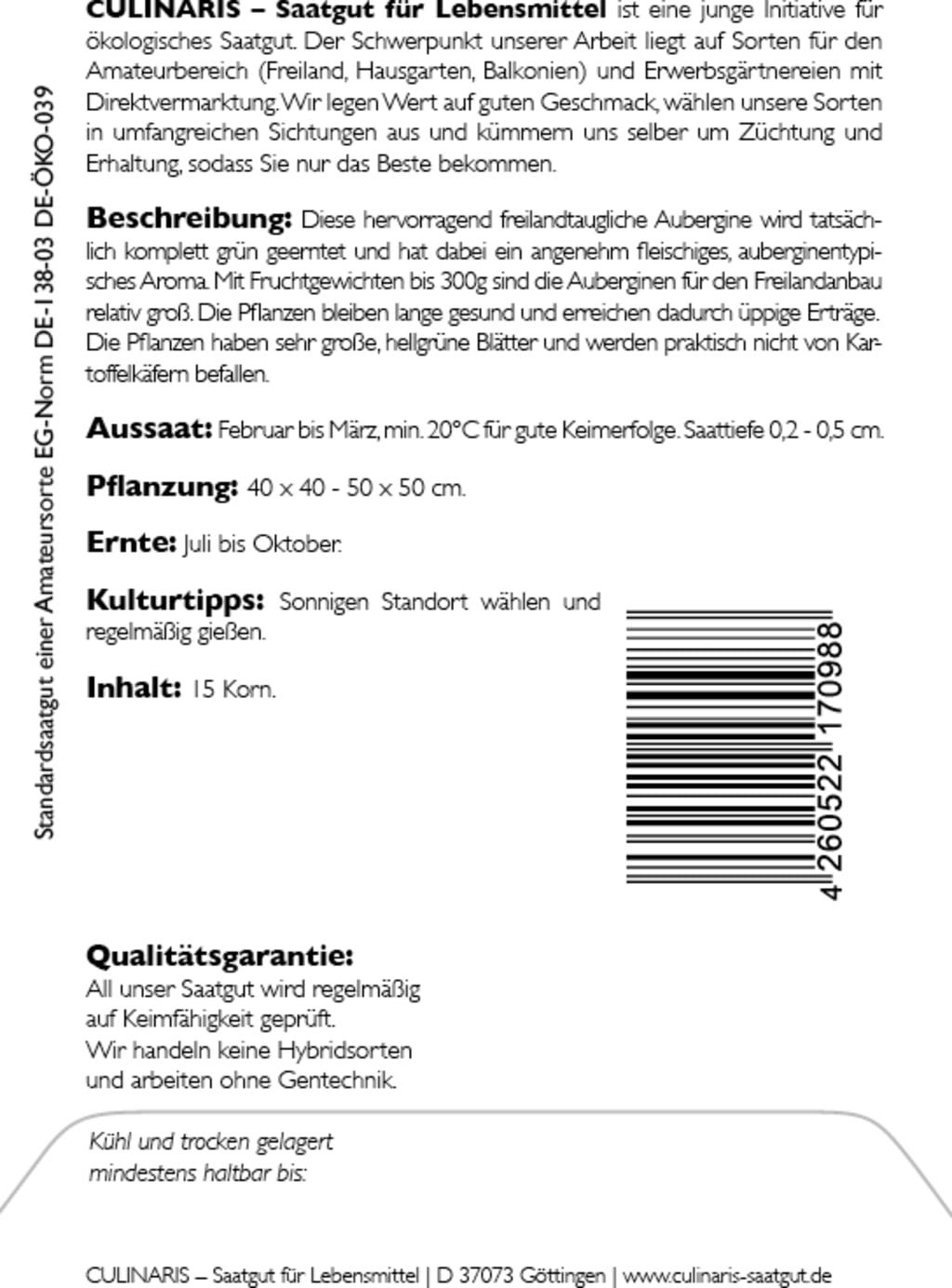 | Výrobce: | Culinaris - Saatgut für Lebensmittel, Thiegasse 5, 37124, Rosdorf, Německo, info@culinaris-saatgut.de, culinaris-saatgut.de |