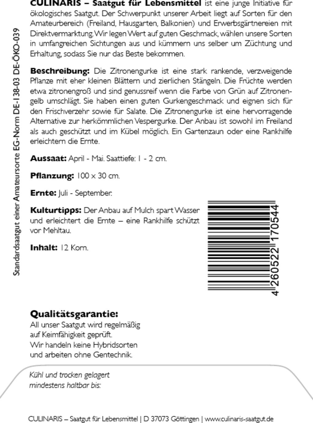 Culinaris Bio okurka citronová, Lemon