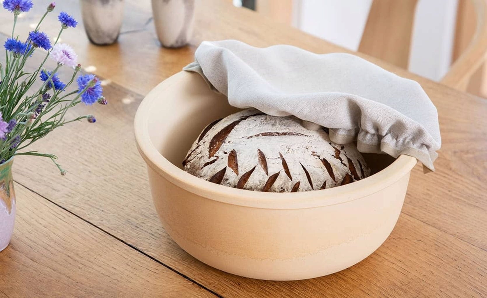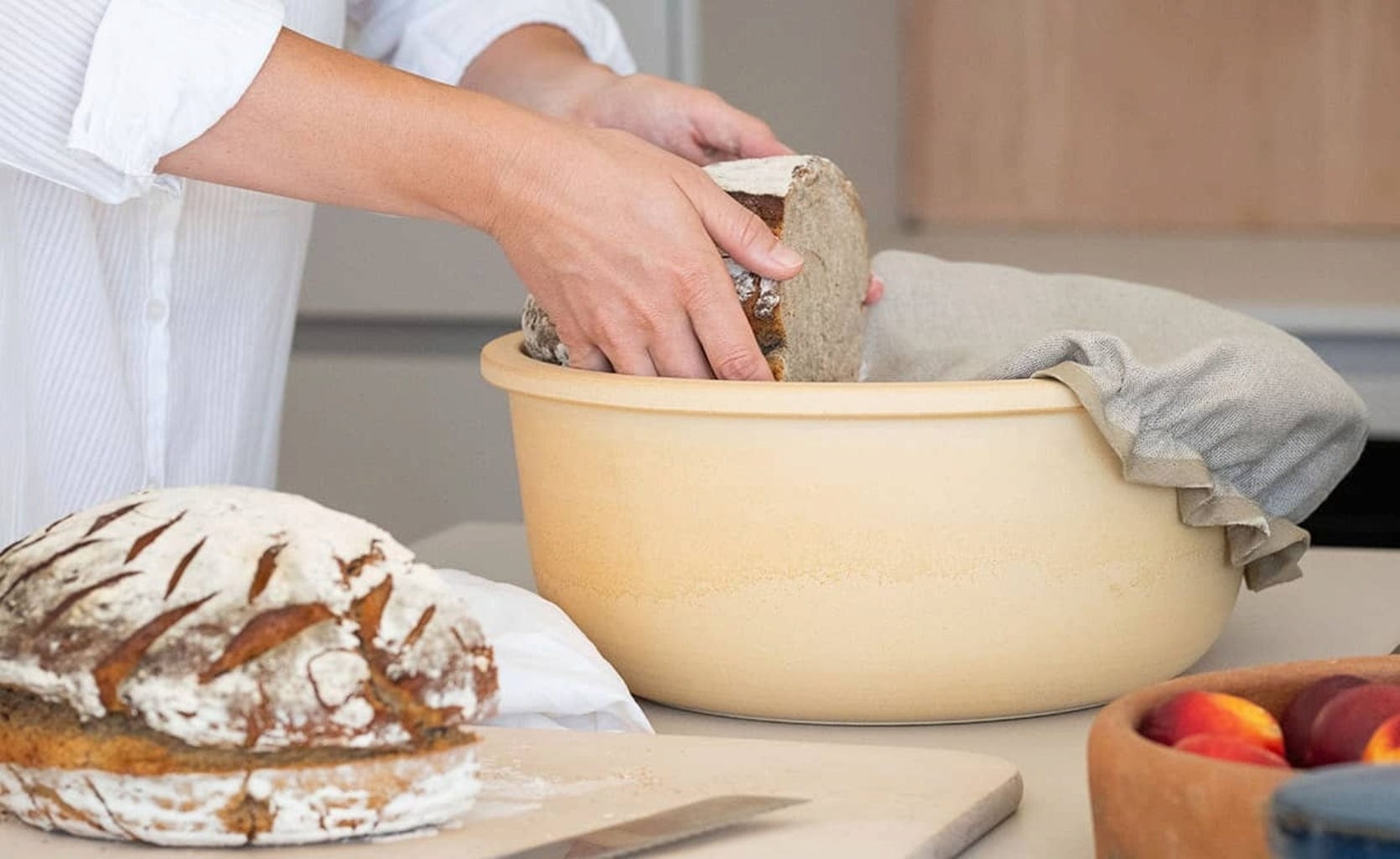 Tento chlebník z přírodní keramiky CeraNatur® je ideálním řešením pro skladování chleba, protože díky kombinaci prodyšné keramiky a lnu zůstane chléb dlouho čerstvý a chutný. Protože oba materiály umožňují cirkulaci vzduchu a také regulují vlhkost, je vytvořeno optimální klima pro skladování chleba. Z domácího chleba si tak můžete ukrajovat dlouho.