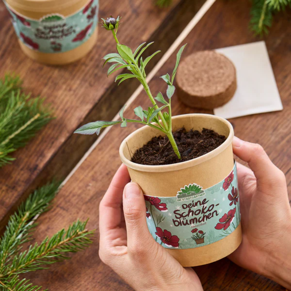 Tato s láskou navržená pěstební sada obsahuje vše, co potřebujete k vypěstování nádherně vonících čokoládových květin: pěstební kelímek, osivo, rašelinovou tabletu a snadno srozumitelný návod. Květy žluté čokoládové květiny šíří svůdnou vůni mléčné čokolády - ideální pro milovníky čokolády.