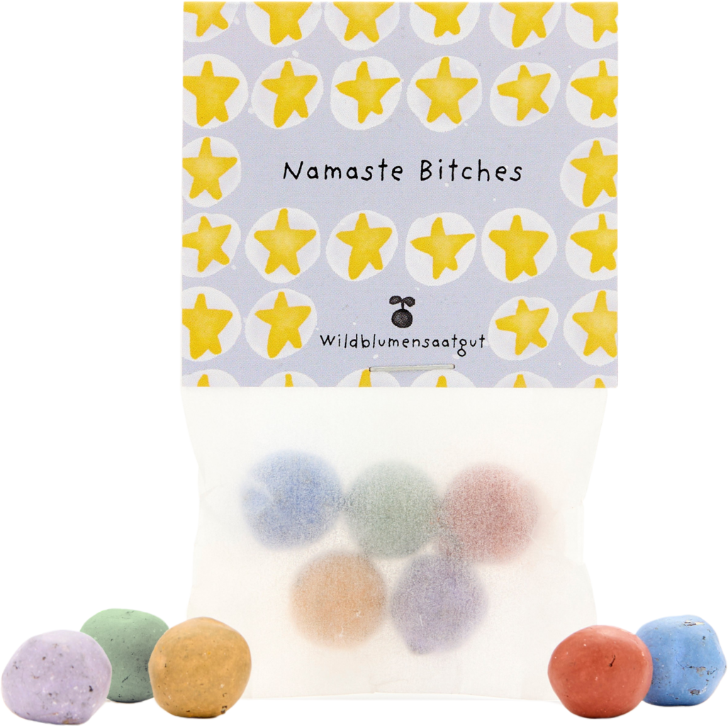 Drzé, květinové, všímavé: Sáčky se semínkovými bombami s nápisem „Namaste Bitches“ přinášejí dobrou náladu a barevné květy - ideální pro všechny, kteří oslavují všímavost s vtipným nadhledem. Stačí vyhodit, zalít a relaxovat. Udržitelné, šetrné k včelám a bez plastů - originální dárek pro jogíny, Vaše nejbližší a všechny, kteří rádi darují se stylem a radostí.