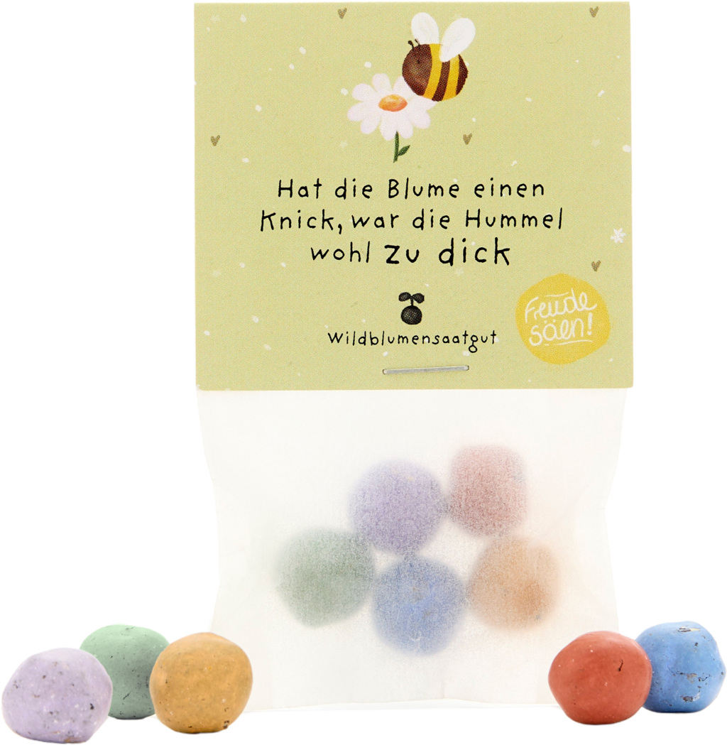 Vtipný citát, který vykouzlí úsměv, a dárek s účinkem: květinové kuličky s nápisem „Když má kytka v stonku zlom, čmelák byl moc tlustý v tom“ se postarají o smích i radost z květů zároveň. Stačí je rozhodit, zalít - a už to bzučí a kvete.