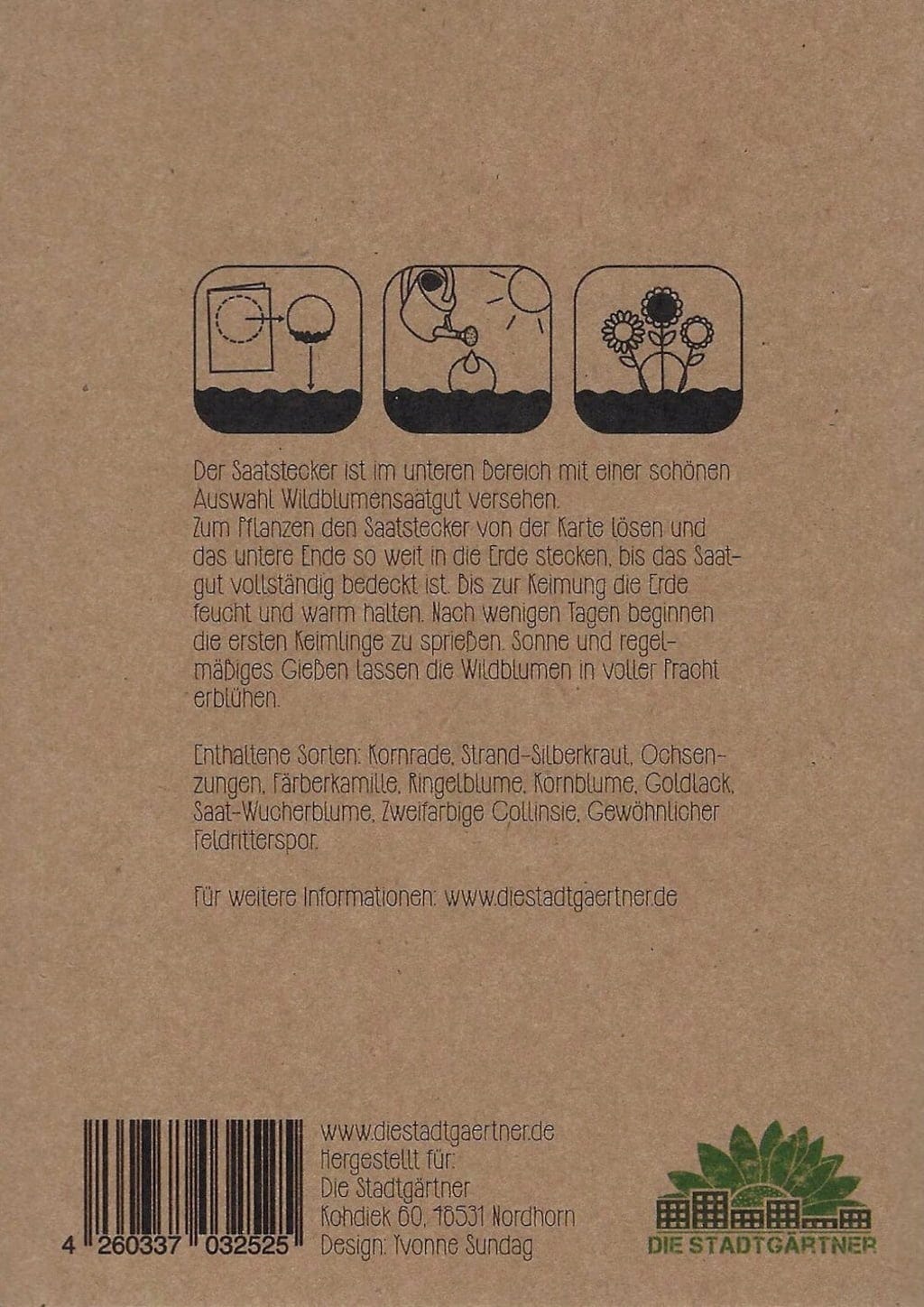 Odstraňte připevněný semínkový papír z přání a v květináči nebo ve volné půdě jej lehce zakryjte hlínou. Dbejte na to, aby byl až do vyklíčení v teple a dostatečně vlhký. Po několika dnech byste již měli objevit první klíčky. Pravidelné zalévání a slunce se postarají o to, aby divoké květiny brzy krásně rozkvetly.