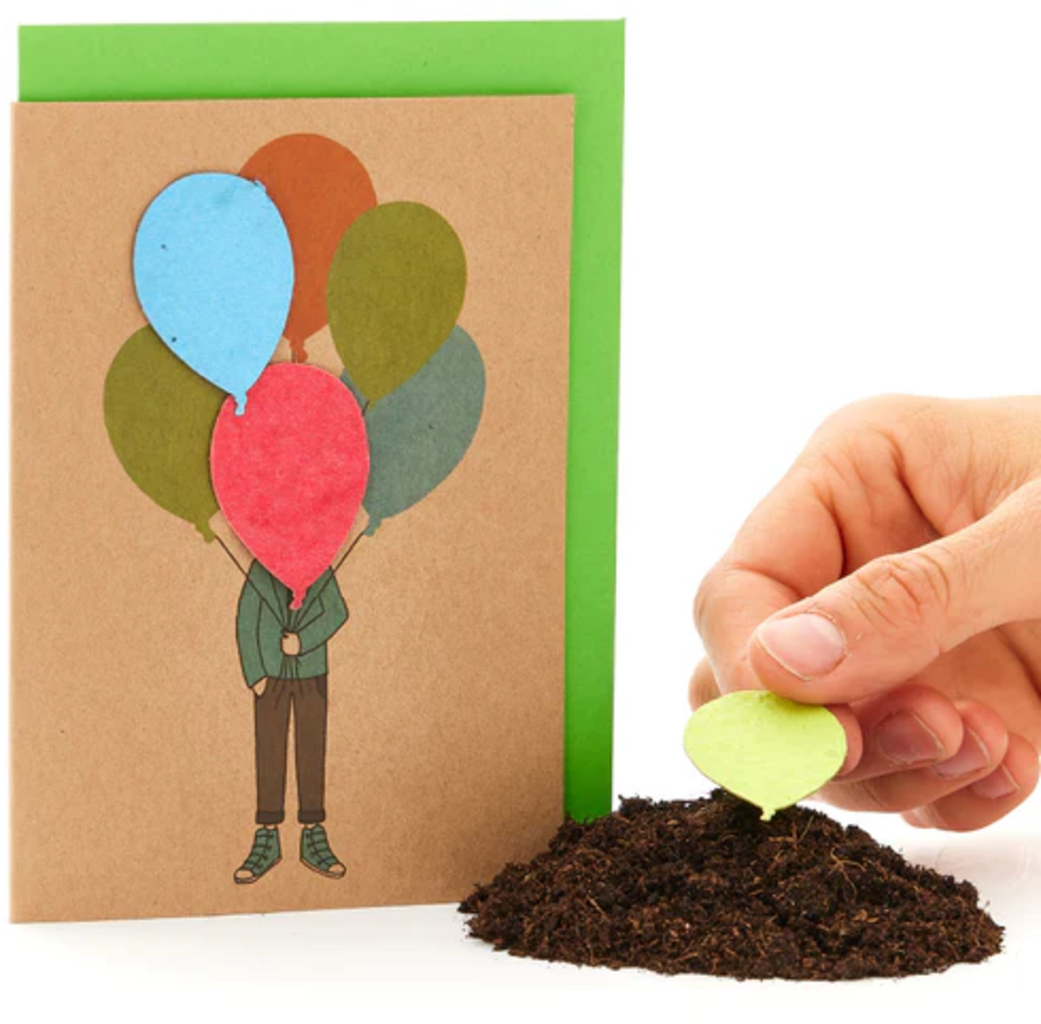 Tato skvělá karta je zdobena přáními v podobě barevných balónků. Tři z balónků navíc obsahují směs krásných divokých květin, které jen čekají na to, až budou zasazeny. Karta Vám tak bude dělat radost ještě dlouhou dobu, až květiny vyklíčí a pokvetou!