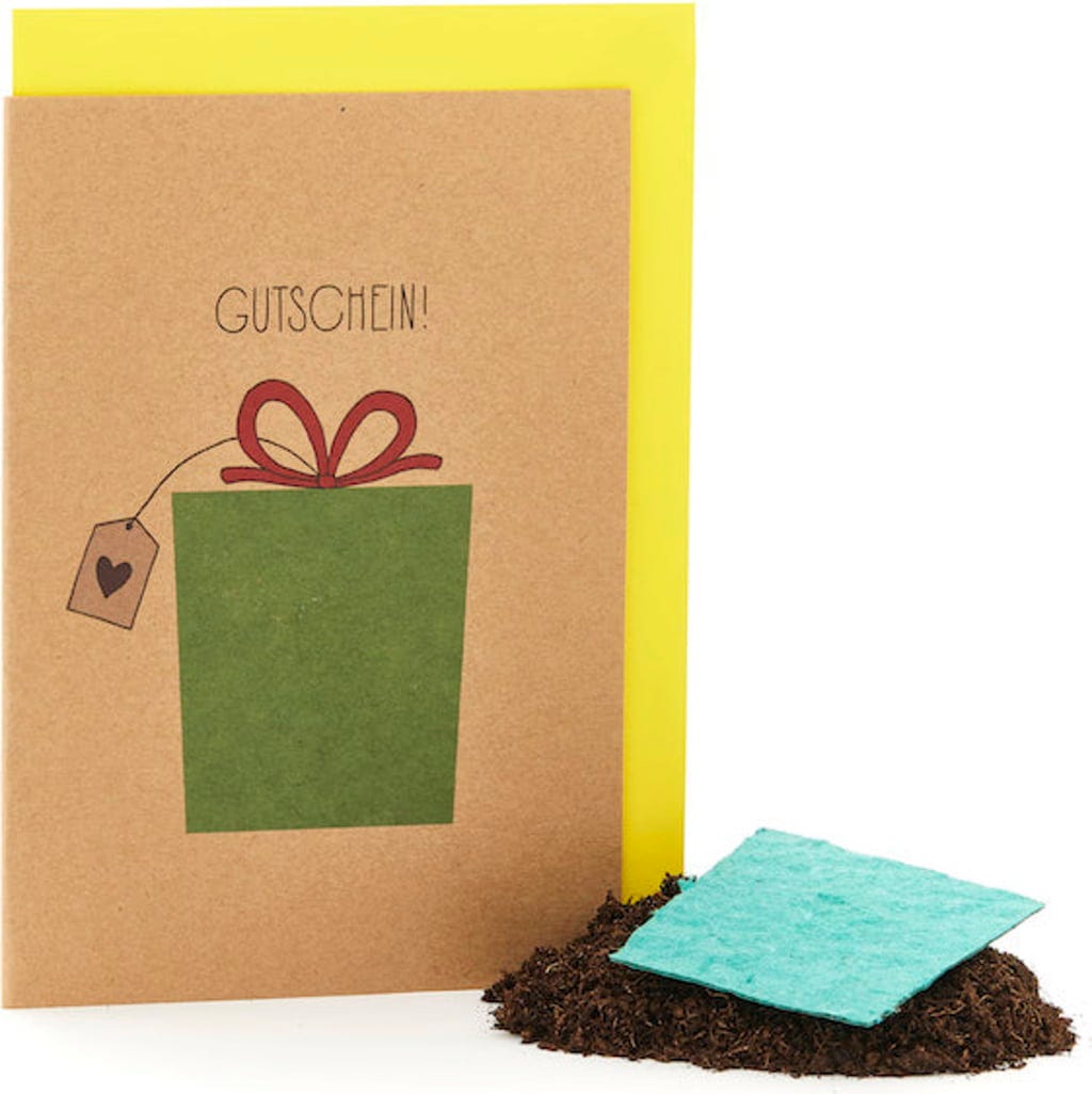 Toto přání je dokonalým obalem pro dárkový poukaz a prezentuje ho velmi okouzlujícím způsobem. A to nejlepší na tom je: balíček je vyroben ze semínkového papíru a obsahuje mnoho malých semínek, která po zasazení do země vyrostou v nádherné divoké květiny.