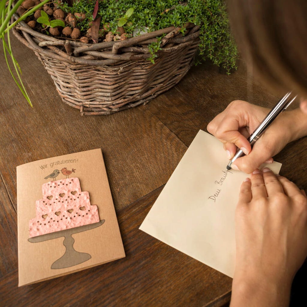 Odstraňte připevněný semínkový papír z přání a v květináči nebo ve volné půdě jej lehce zakryjte zeminou. Dbejte na to, aby byl až do vyklíčení v teple a dostatečně vlhký. Po několika dnech byste již měli objevit první klíčky. Pravidelné zalévání a slunce zajistí, že divoké květiny brzy krásně rozkvetou.