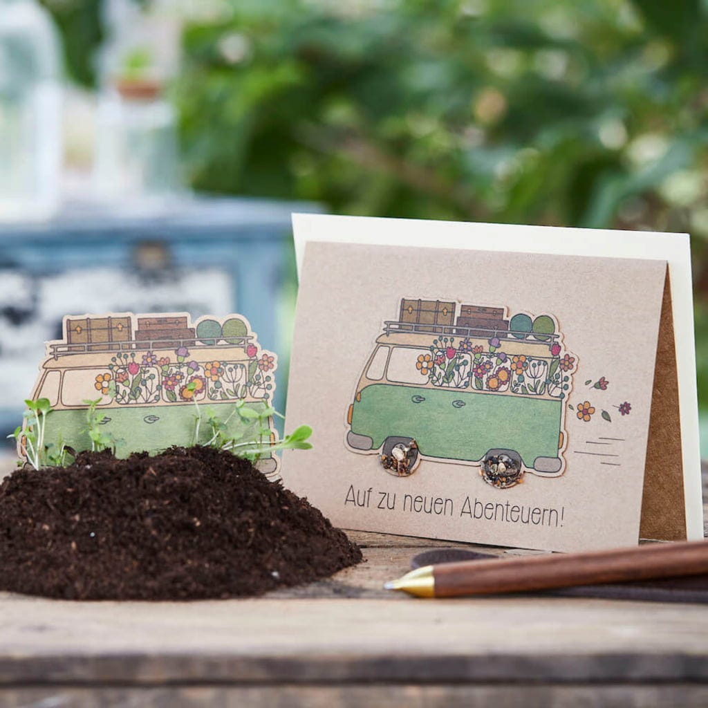 Život je plný dobrodružství, která čekají na to, až je prožijete! Toto přání je dokonalou pozvánkou na příští objevitelskou cestu a zaručeně probudí touhu po dobrodružství. Než se vydáte na další cestu, může se obdarovaný těšit z krásných divokých květin ukrytých v přání. Stačí jednoduše odlepit autobus a vložit jej do hlíny. Teď už jen zalít a brzy se objeví první křehké výhonky.