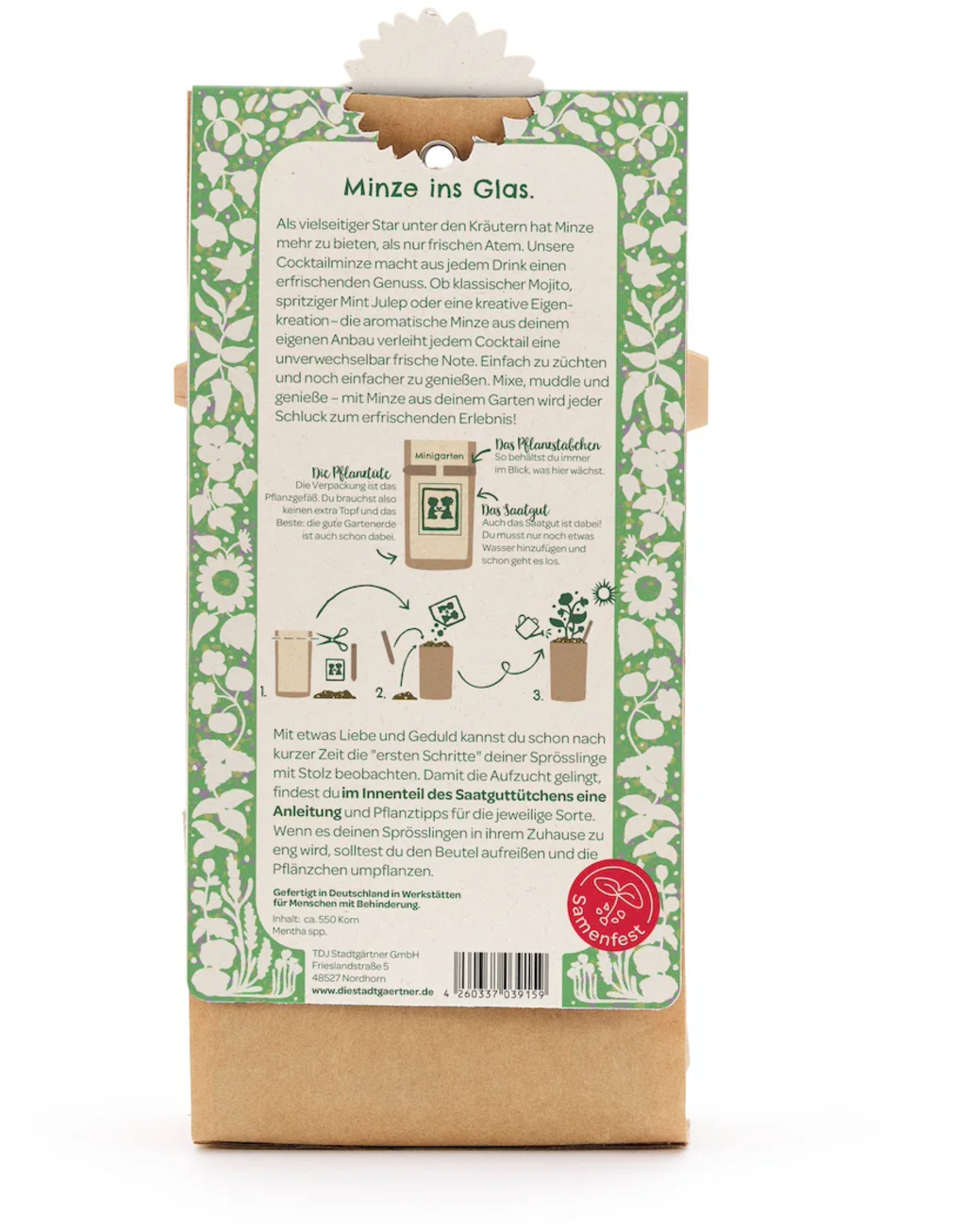 Sada obsahuje vysoce kvalitní osivo, speciální pěstební substrát, zapichovací štítek k rostlinám a povrchově upravený obal, který můžete použít přímo jako pěstební nádobu - ideální pro snadné a úspěšné pěstování!