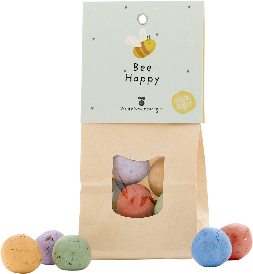 Tento vesele navržený sáček přinese do Vašeho všedního dne lehkost. 8 semenných kuliček s pestrou směsí divokých květin se s minimálním úsilím postará o kvetoucí hru barev - na balkoně, na zahradě nebo v květináči. Stačí je rozhodit, zalít a nechat růst malé štěstí. Nápis „Bee Happy“ připomíná, že si máte užívat krásné okamžiky. Ideální pro povzbuzení, jako malé poděkování nebo veselý dárek pro Vaše blízké. Ekologický papírový obal se zcela obejde bez plastů - potěšení pro srdce, oči i přírodu.
