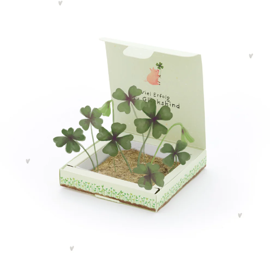 Tato s láskou navržená pěstební krabička dodává odvahu, štěstí a malý zelený záblesk naděje. Ideální pro všechny, kteří čelí výzvám, začínají novou životní etapu nebo prostě jen potřebují trochu štěstí - jako znamení: Zvládneš to! Ze semínek vyroste šťavel, a s trochou štěstí se objeví i čtyřlístek - klasický symbol trvalého štěstí.